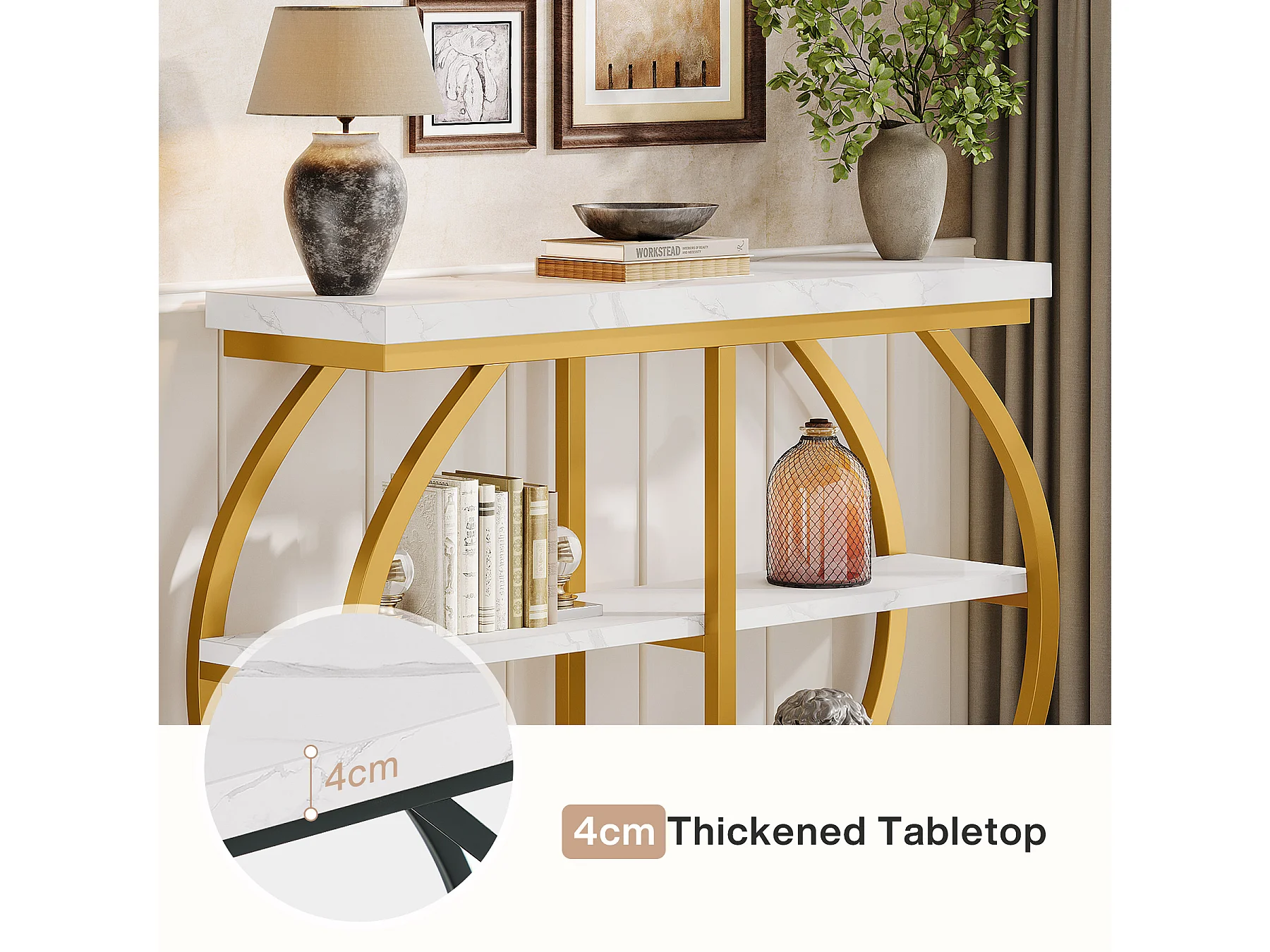 105 cm hohe Konsole, industrieller 3-stufiger Eingangstisch mit gewölbtem Metallrahmen