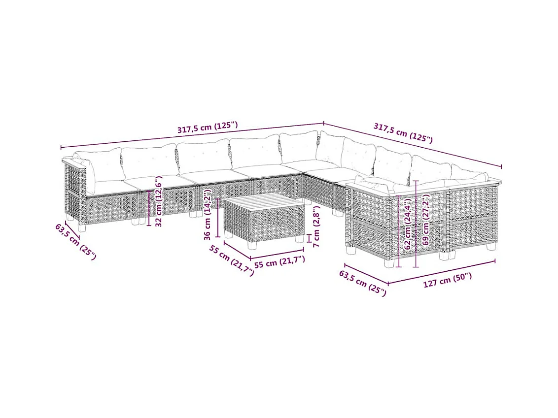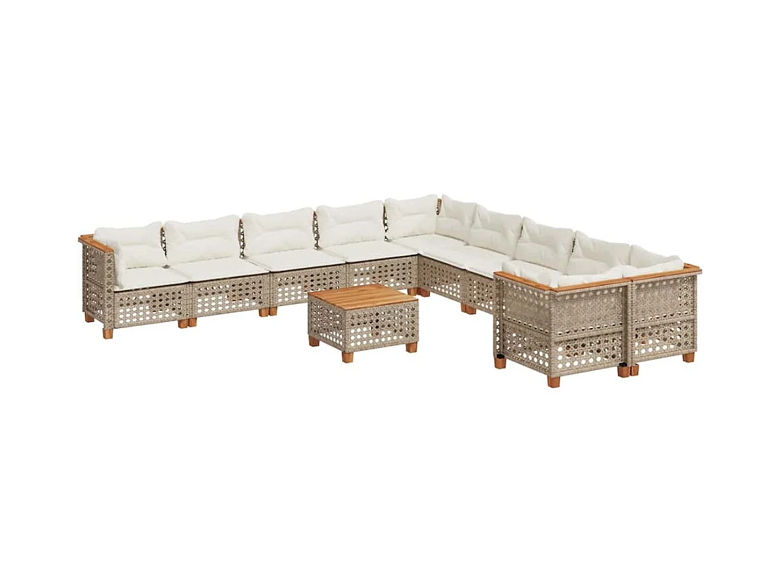 11-tlg. Garten-Sofagarnitur mit Kissen Beige Poly Rattan