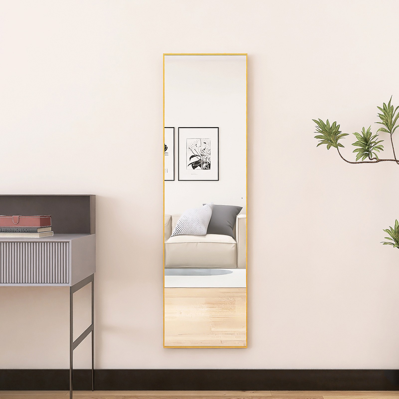 140x40 cm Standspiegel, Gold Aluminiumrahmen, Moderner Wandspiegel zum Stellen oder Aufhängen