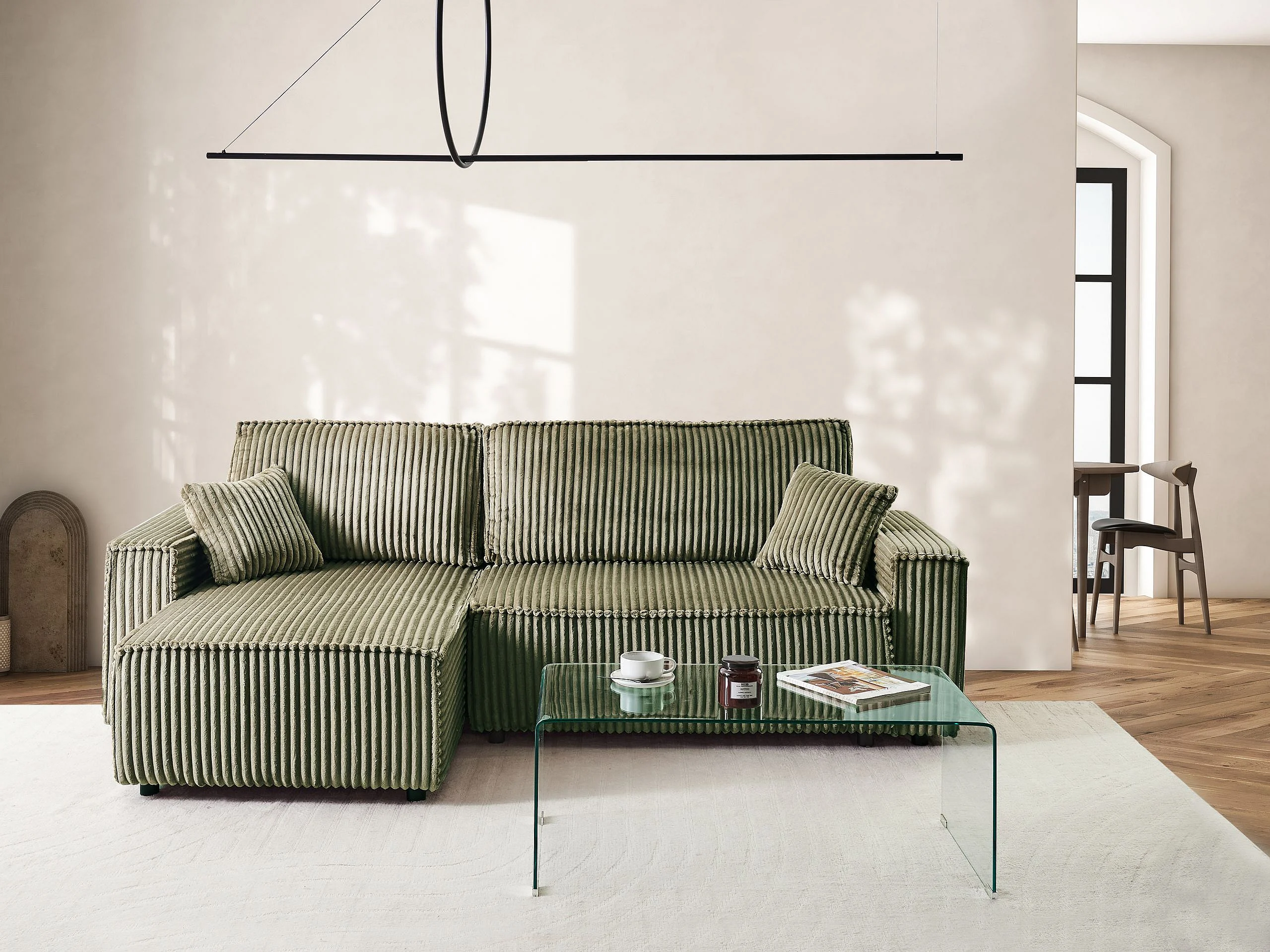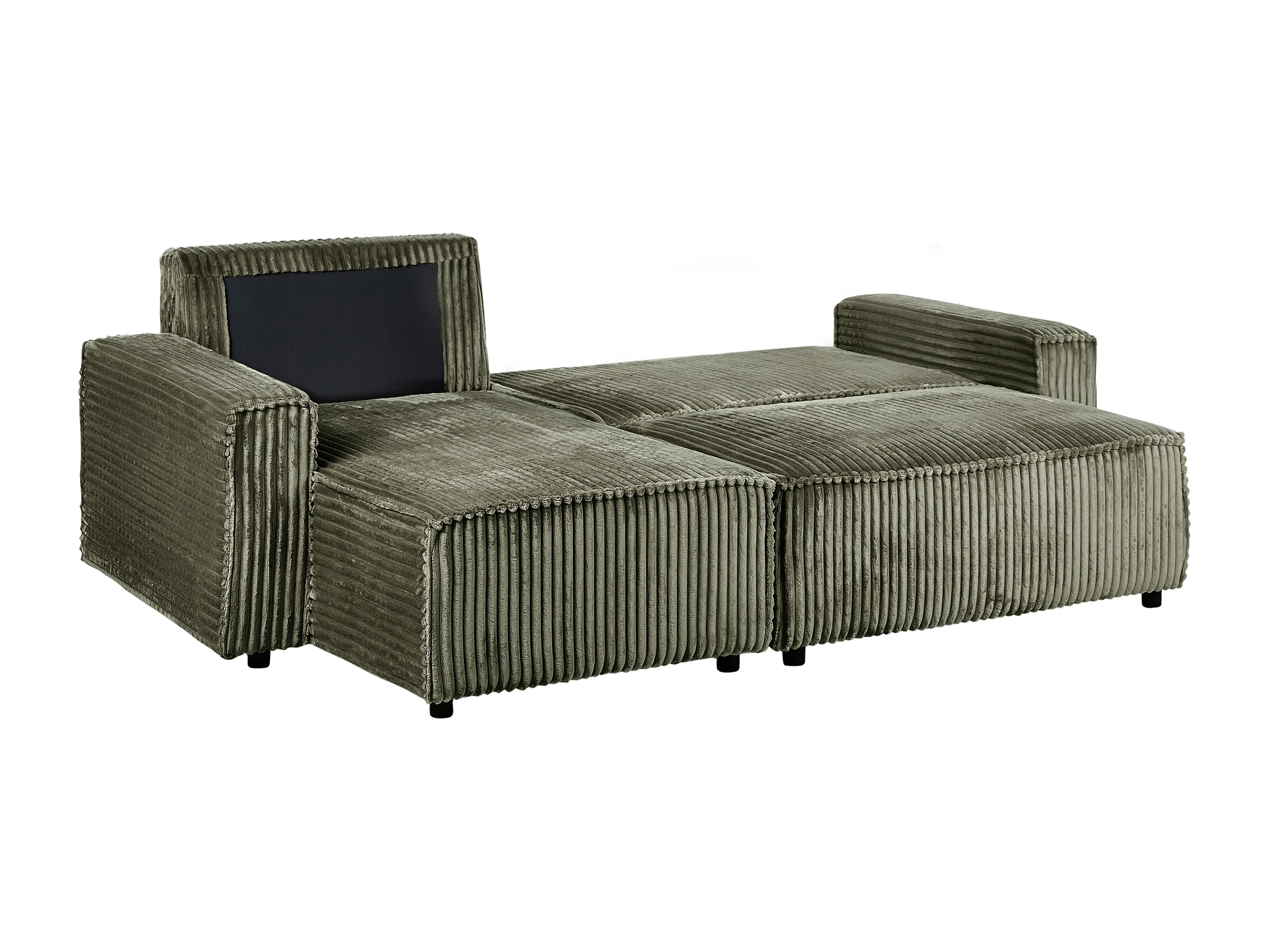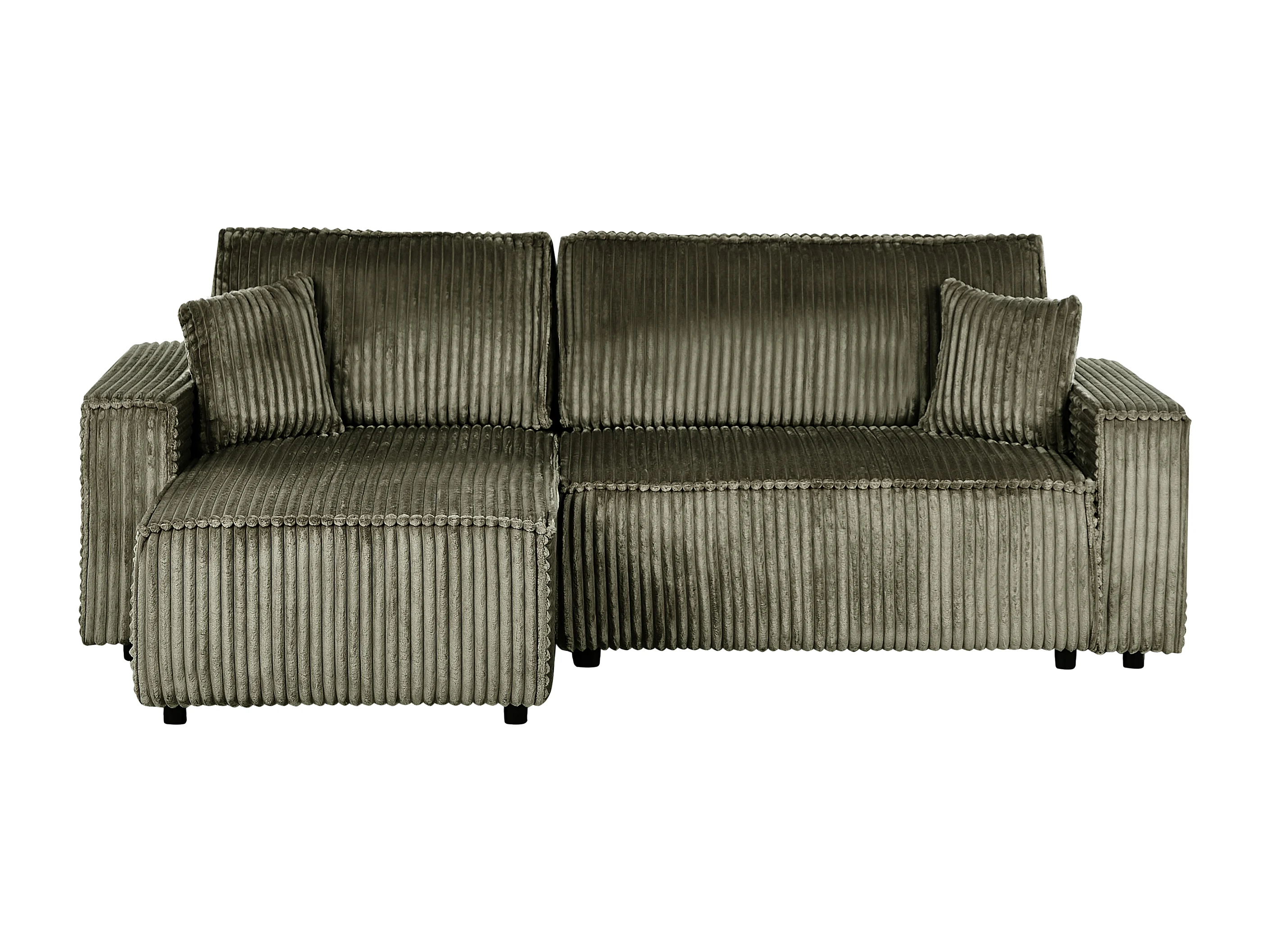 2-Sitzer Ecksofa Cord grün L-Form mit Schlaffunktion Chaiselongue rechts Abacka