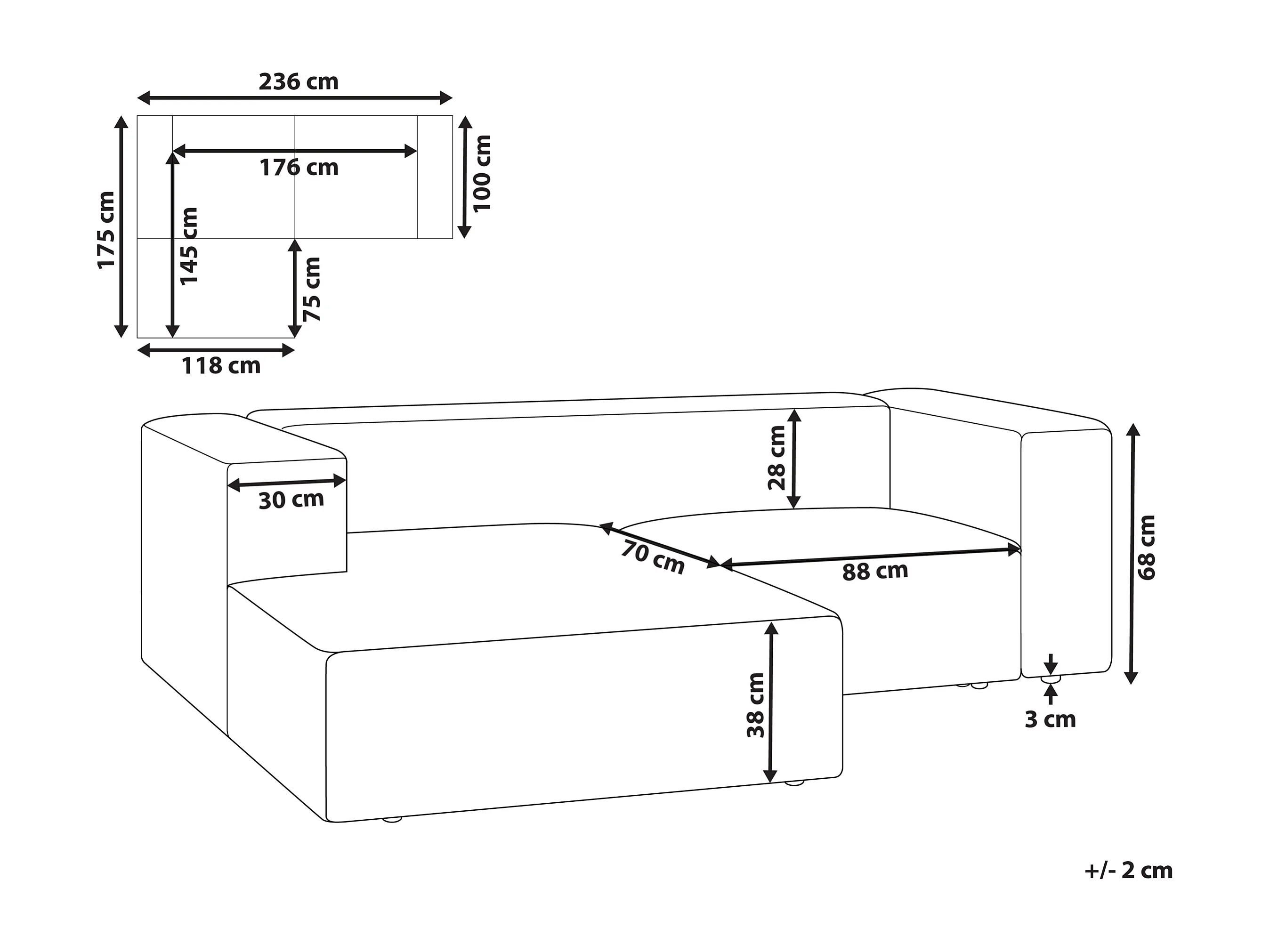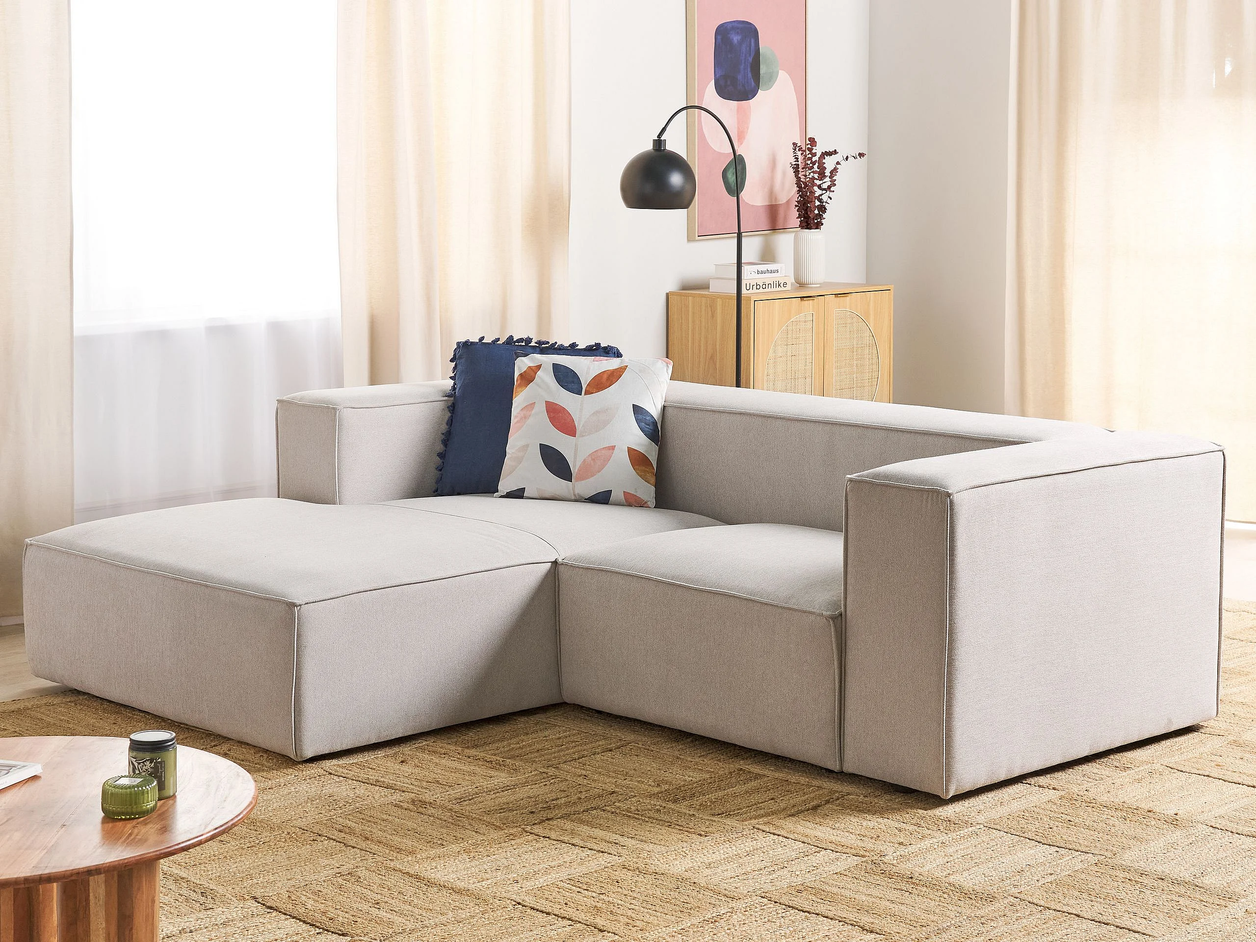2-Sitzer Ecksofa L-förmig beige mit Chaiselongue rechts breite Armlehnen Vernon