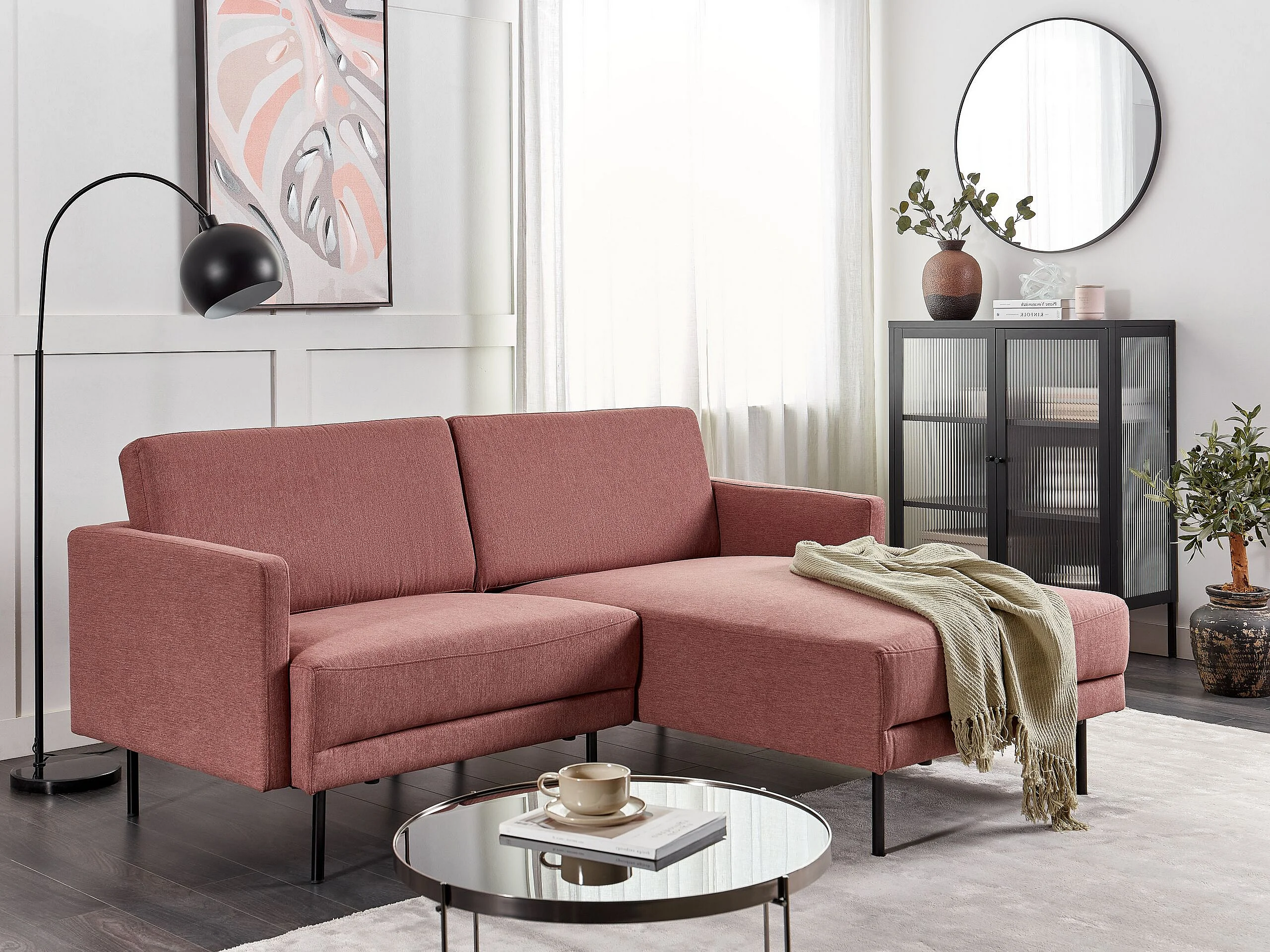 Ecksofa BREDA Stoff Rosa 2-Sitzer linksseitig
