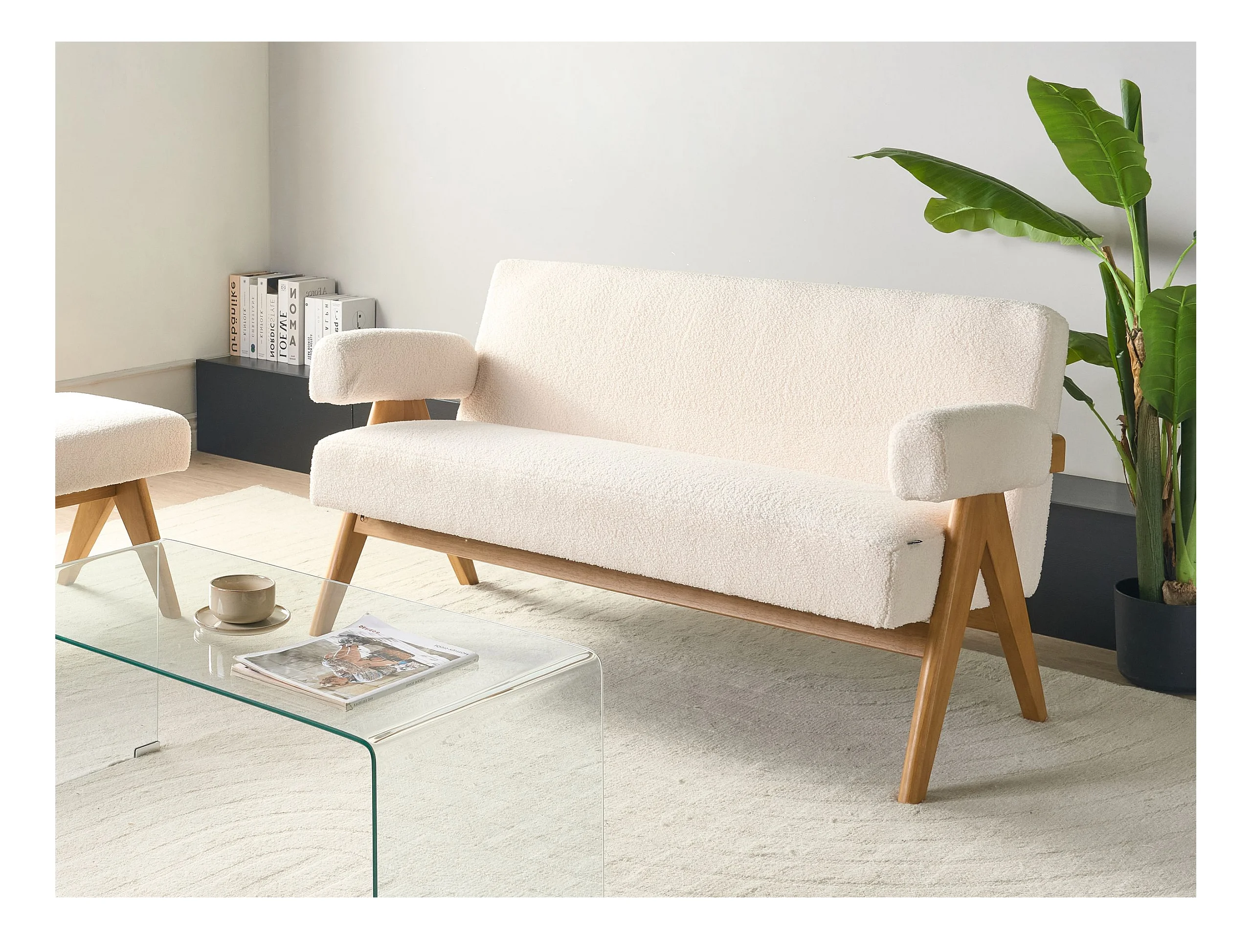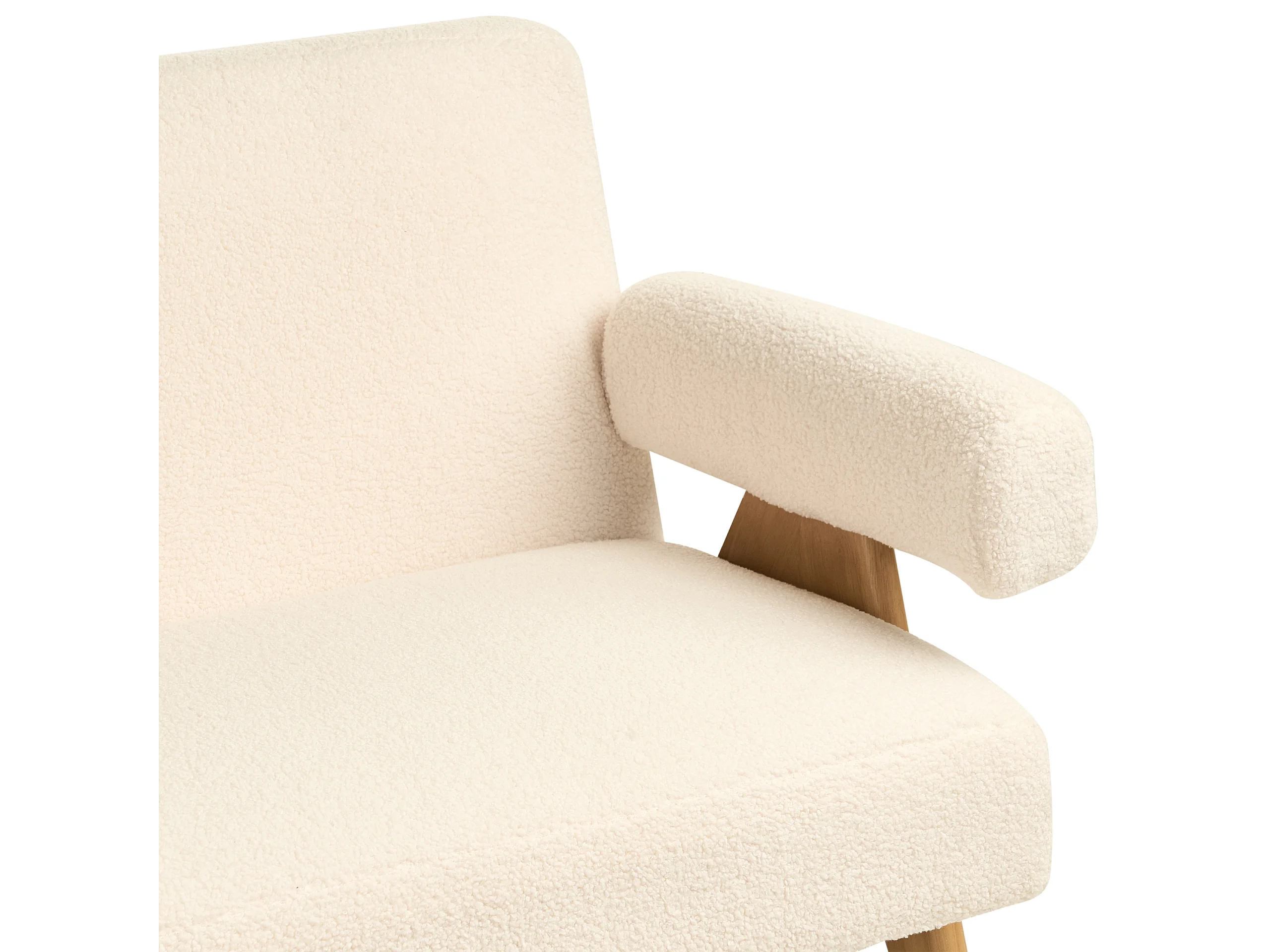 2-Sitzer Sofa Bouclé cremeweiß mit Armlehnen Holzbeinen hellbraun Retro Tamre