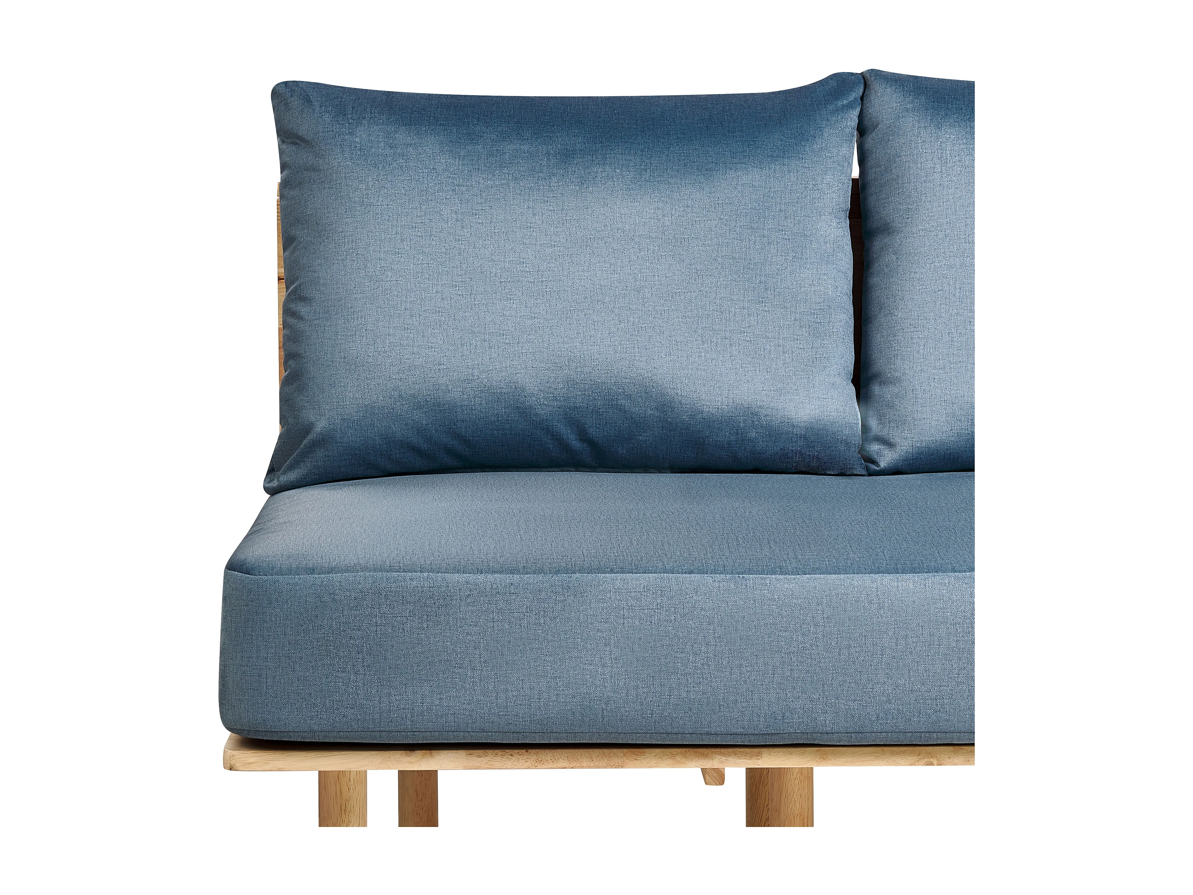 2-Sitzer Sofa Stoffbezug grün mit 2 Kissen Knopfheftung helle Holzbeine Kalmar