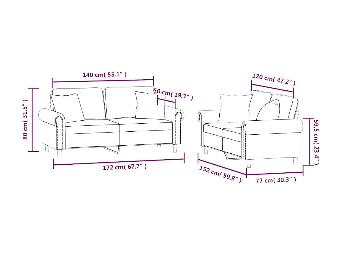 2-tlg. Sofagarnitur mit Kissen Dunkelgrün Samt