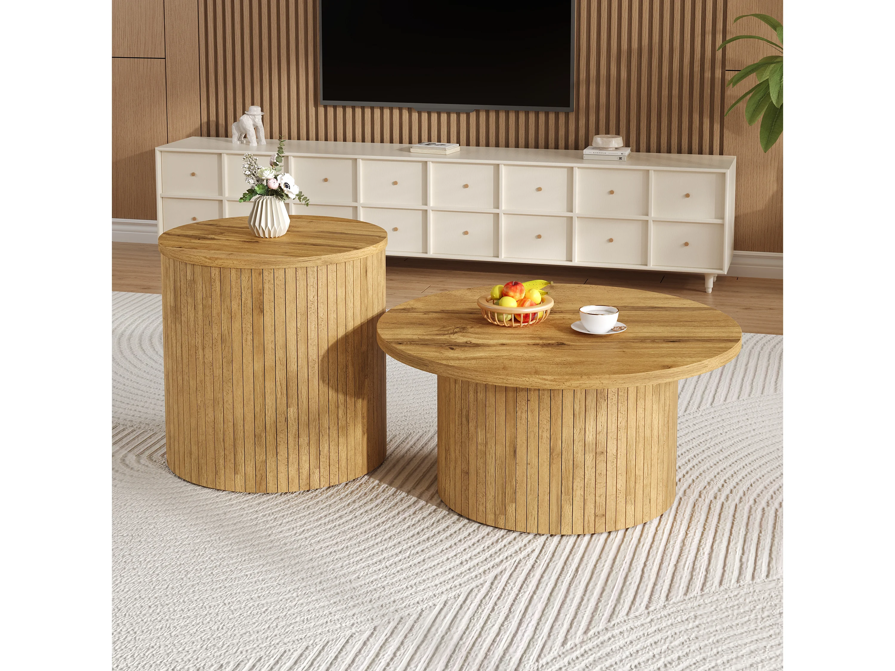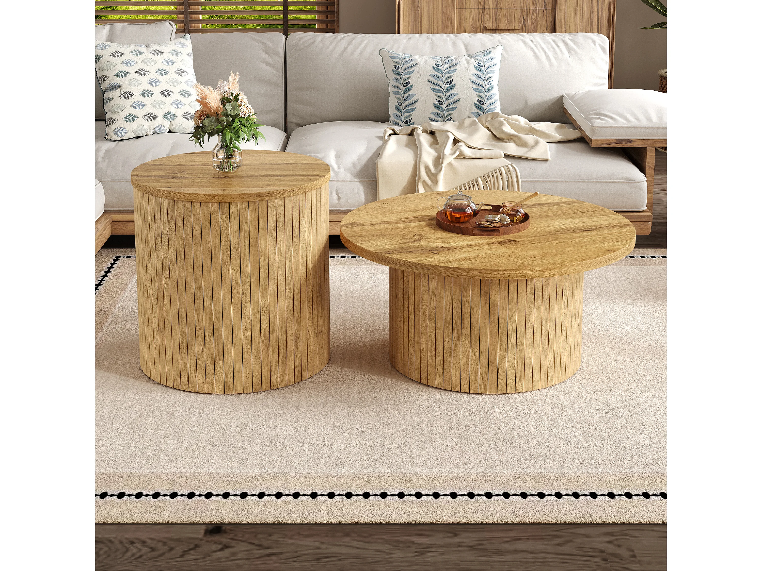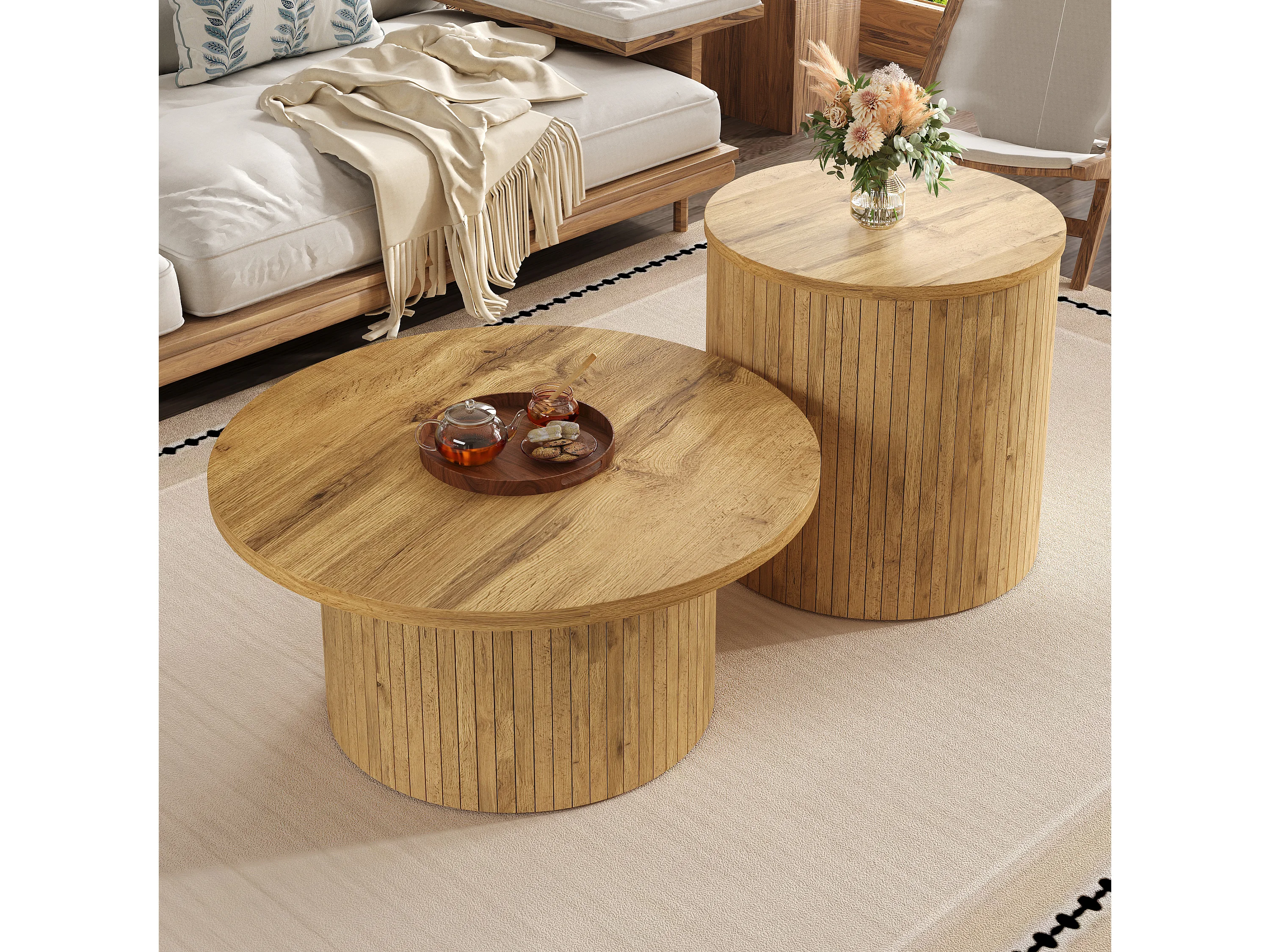 2er-Set Couchtische mit Holzplatten – multifunktionale Wohnzimmertische – MDF – natur