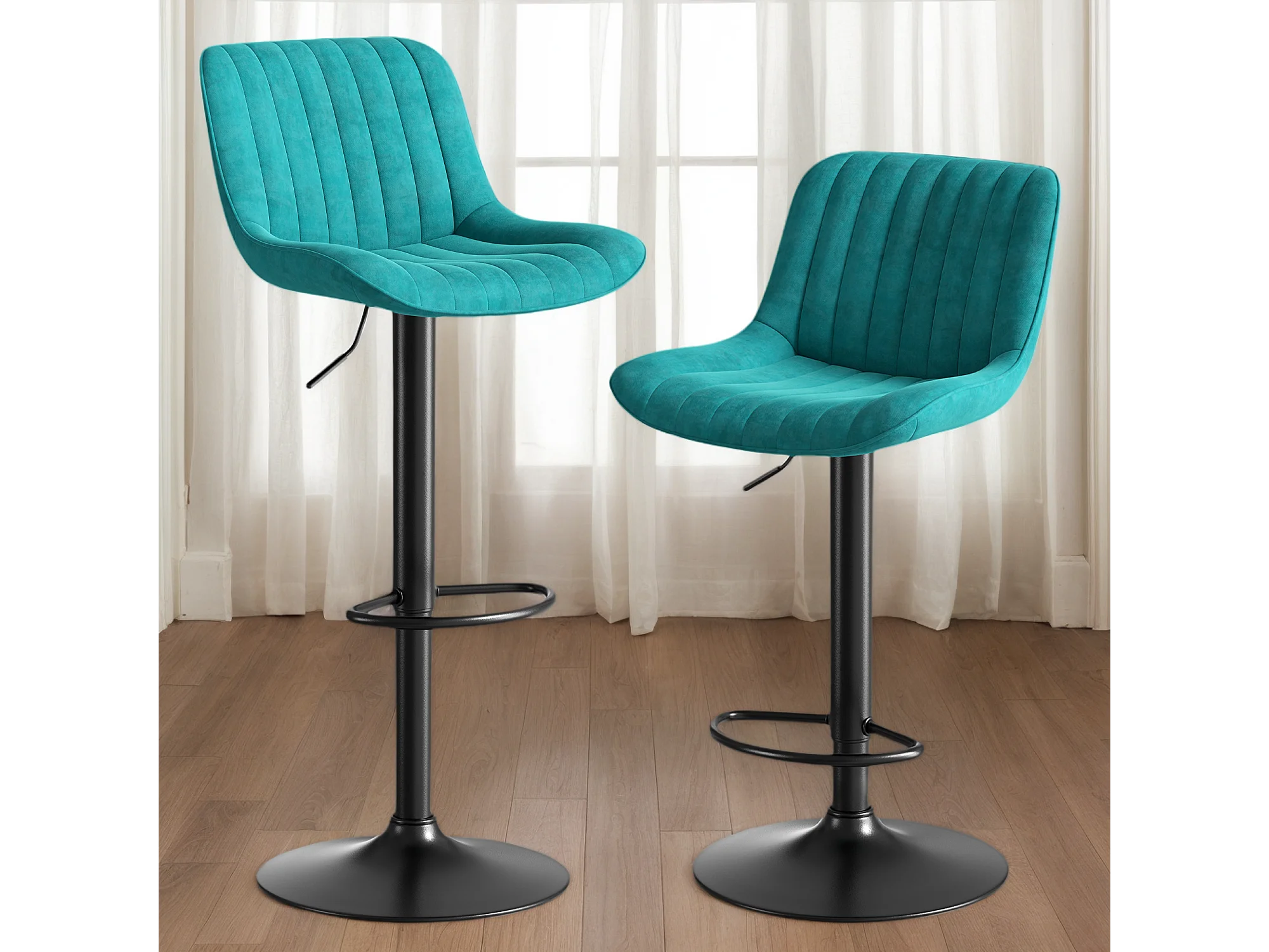 2er-Set drehbare Barhocker - höhenverstellbar und 360° drehbar - blauer Samt