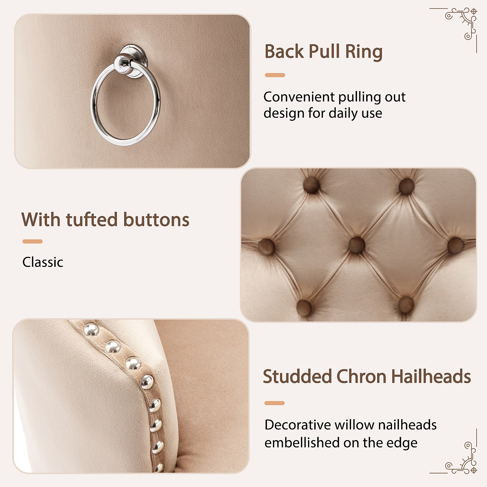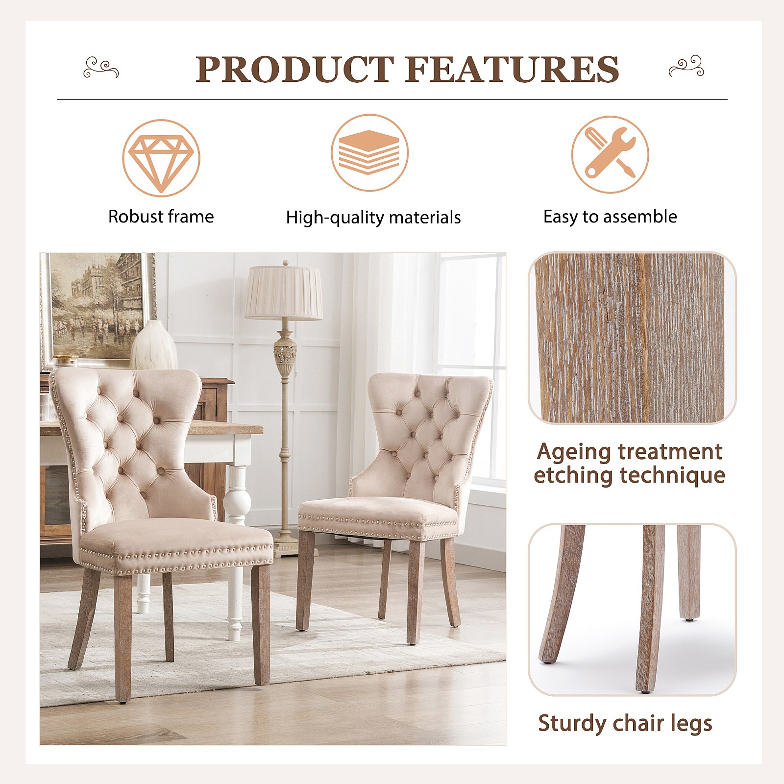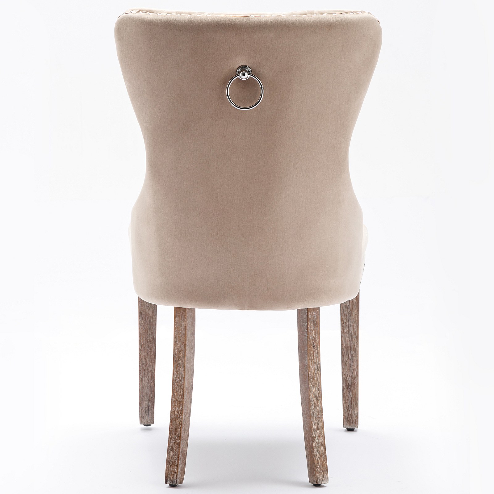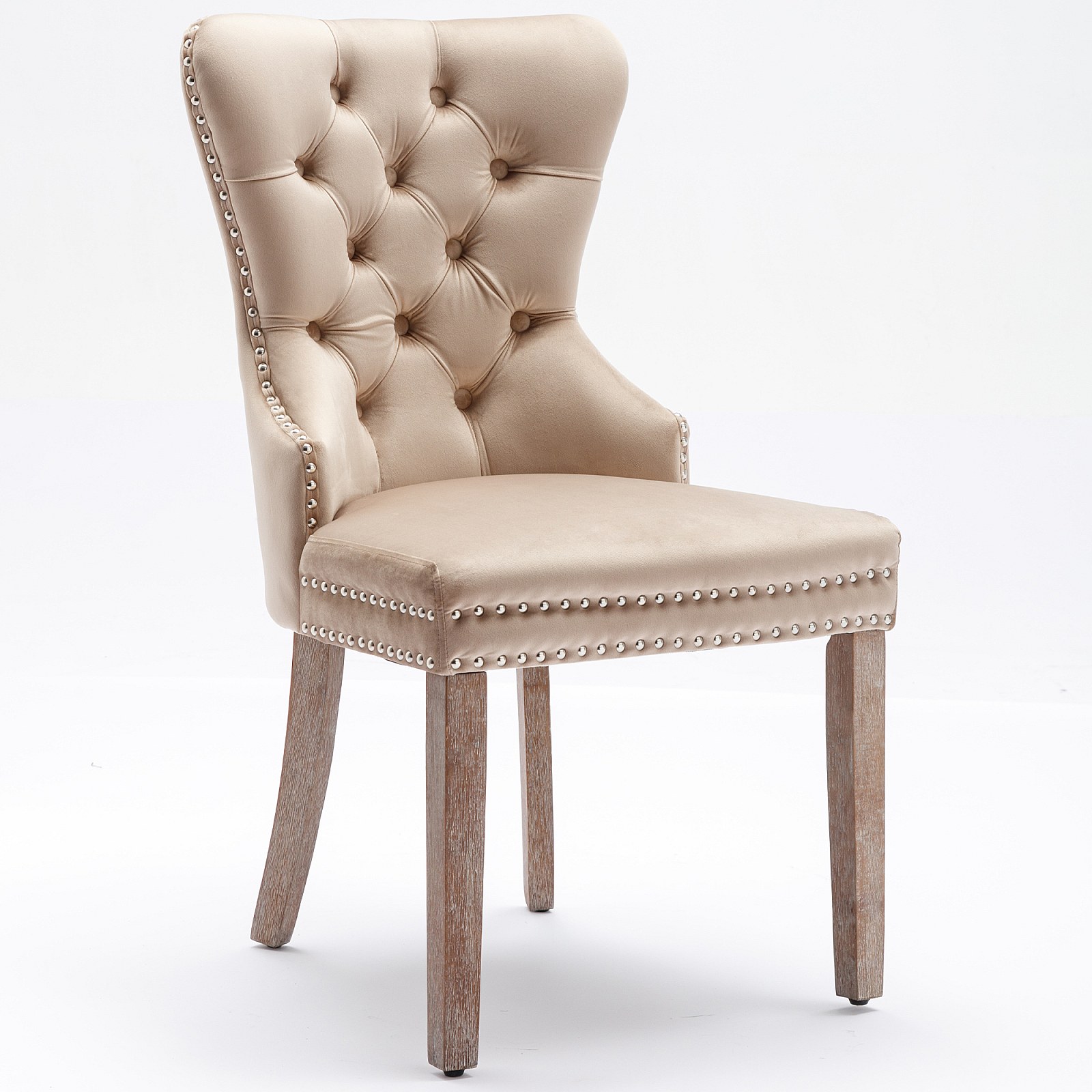 2er-Set Esszimmerstühle, hohe Rückenlehne, Vintage-Samt, Knöpfe, Massivholzrahmen