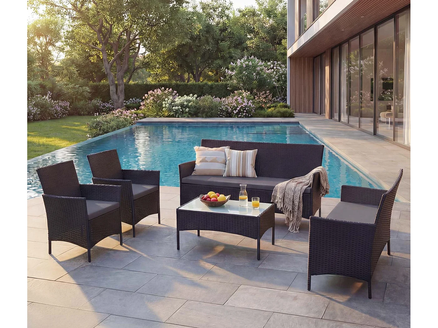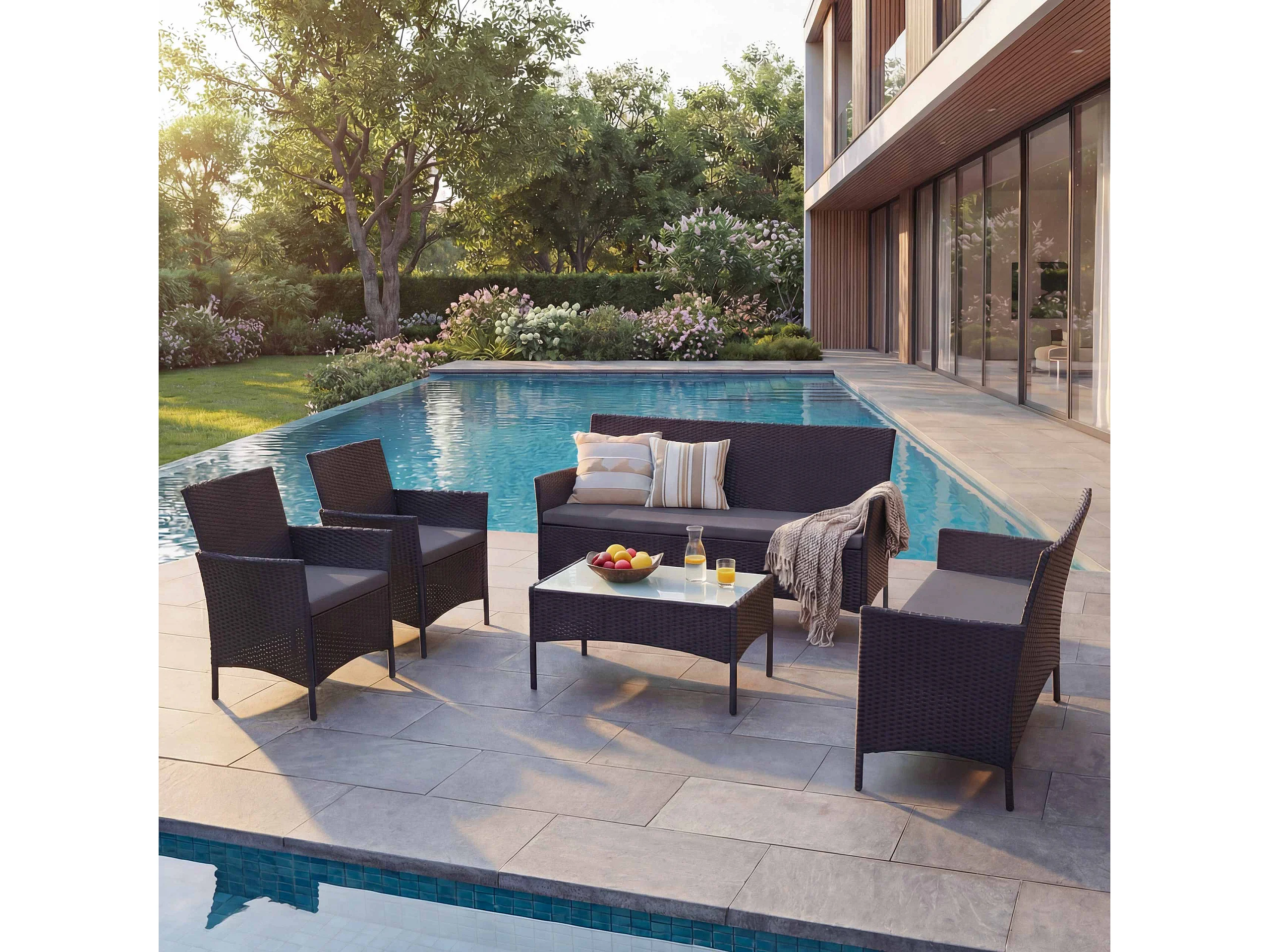 3-2-1-1 Poly-Rattan Garnitur Hamar, Anthrazit, Kissen anthrazit