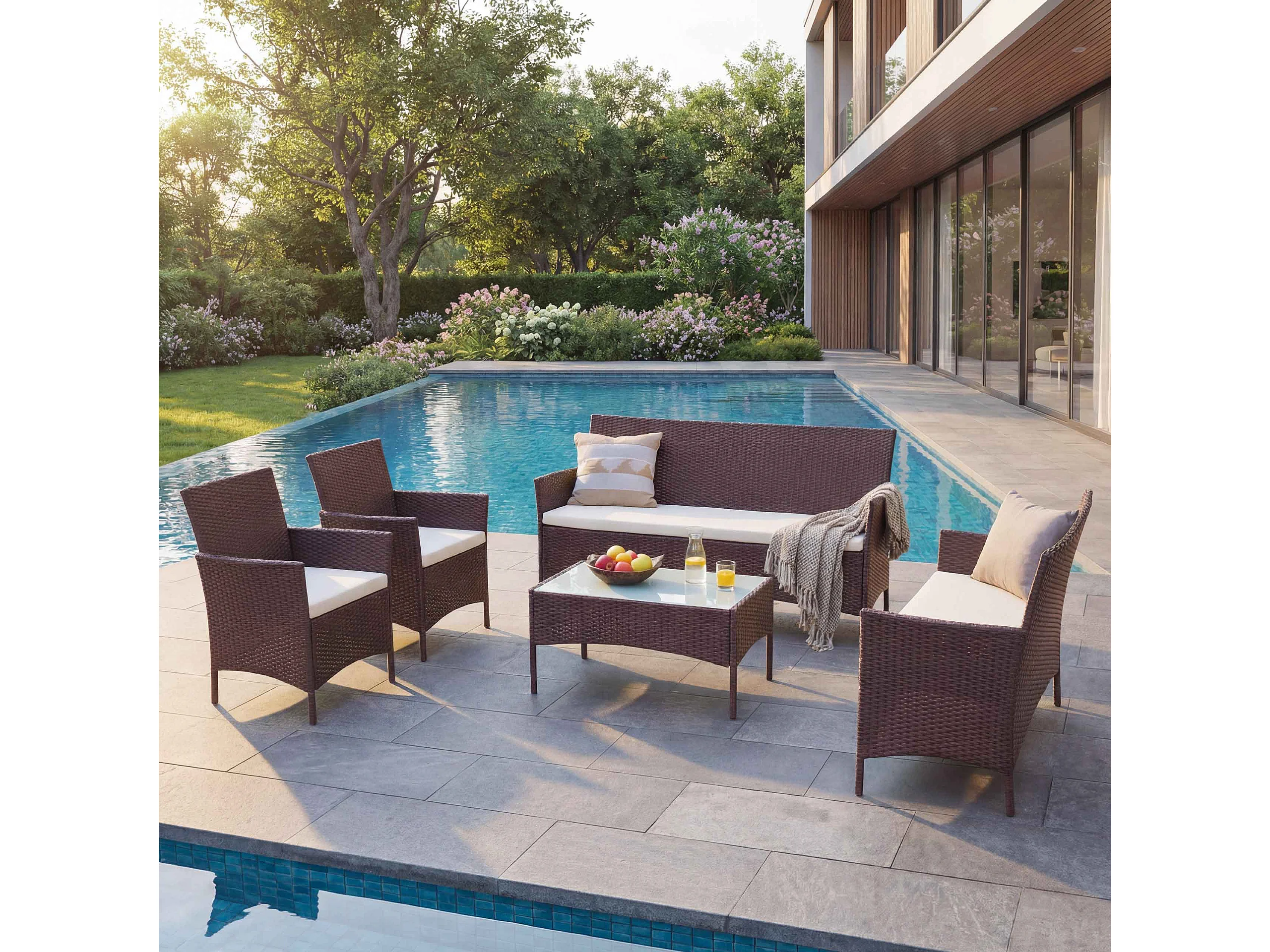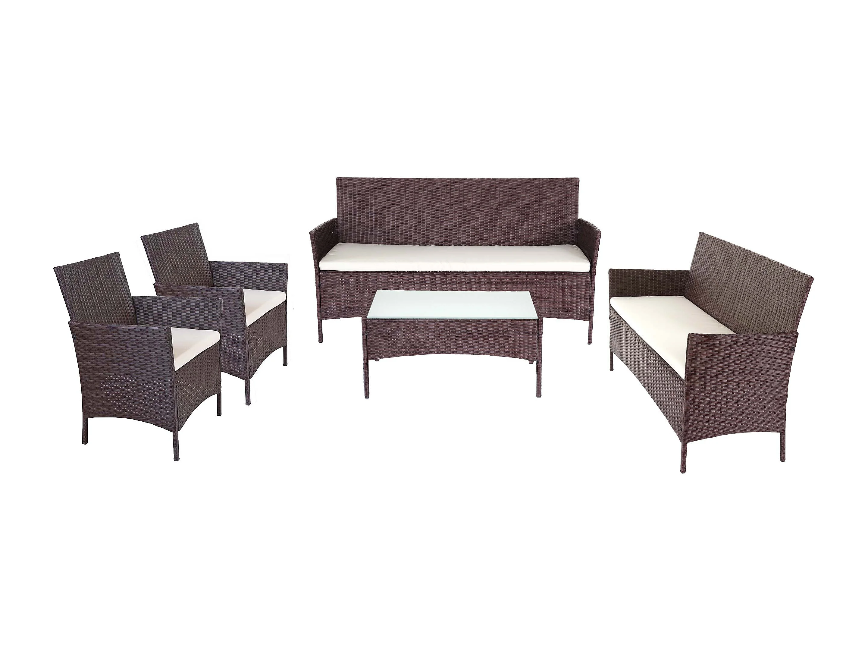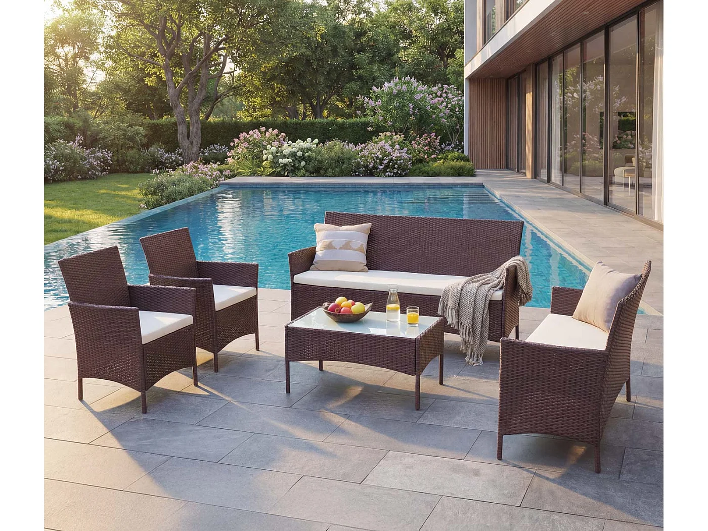 3-2-1-1 Poly-Rattan Garnitur Hamar, Braun-meliert, Kissen creme