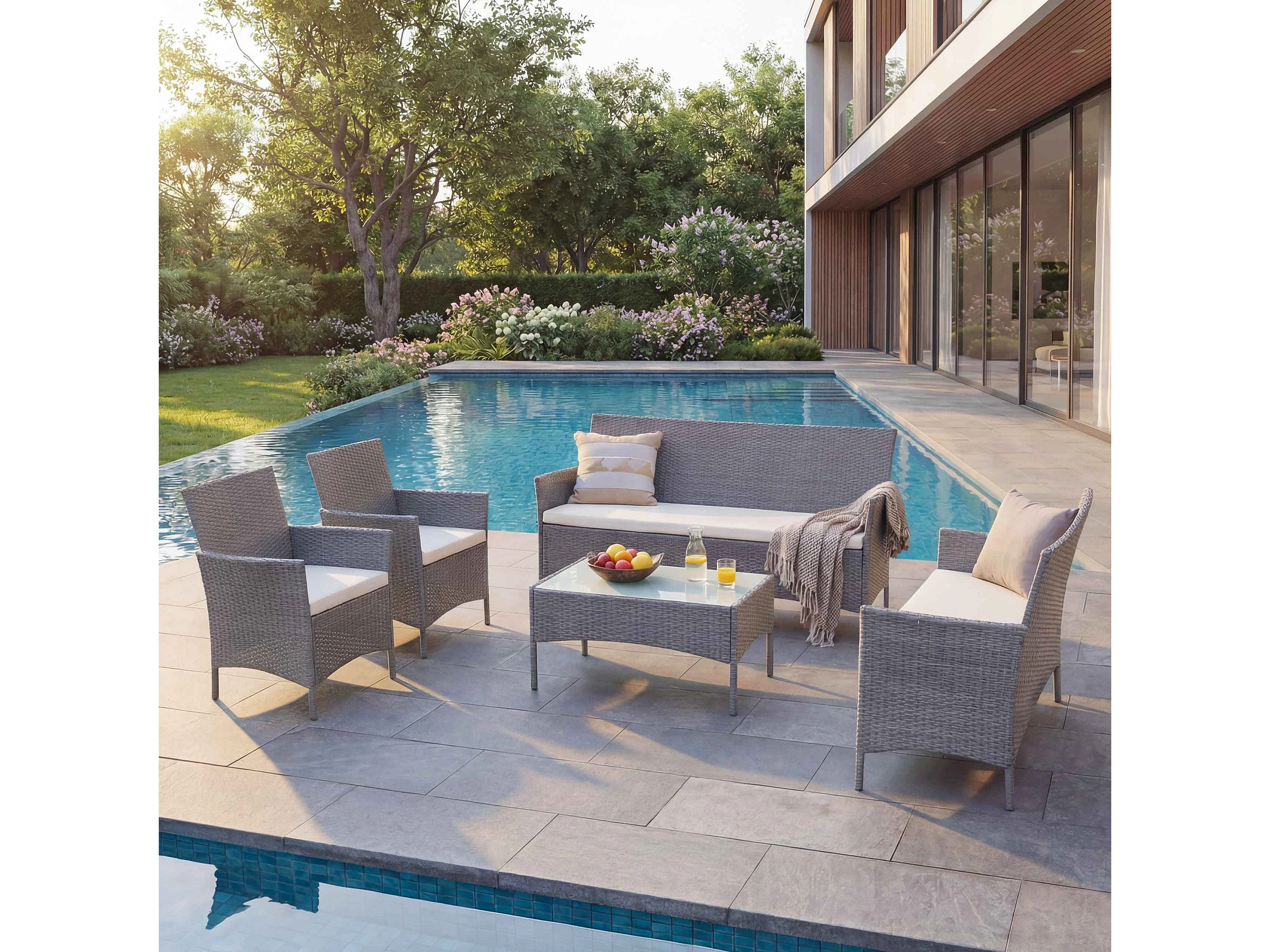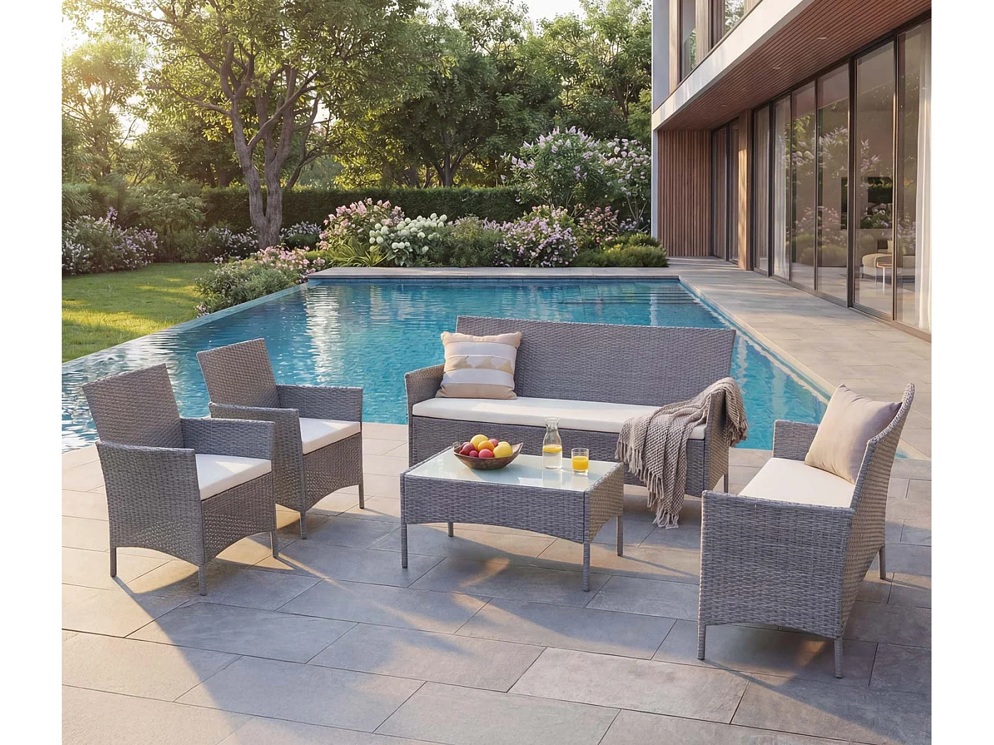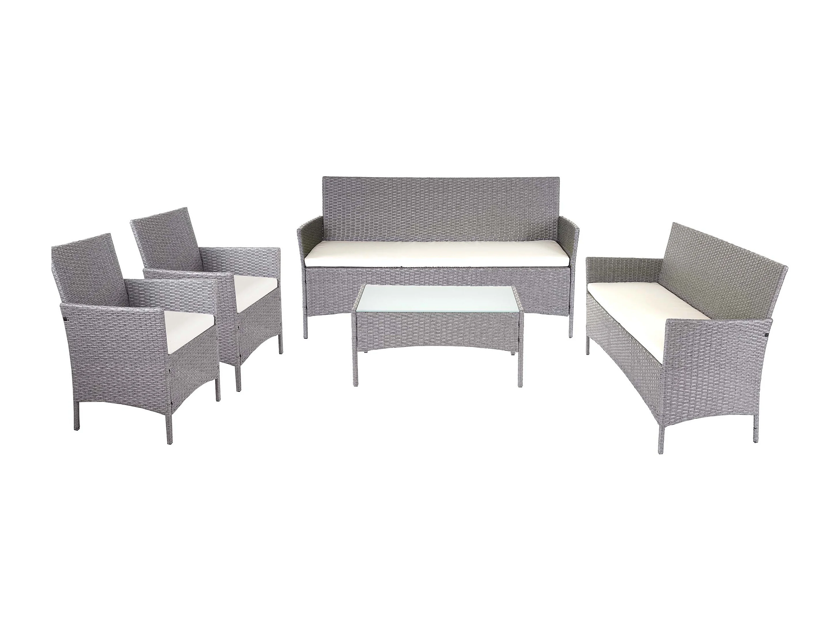 3-2-1-1 Poly-Rattan Garnitur Hamar, Grau, Kissen creme