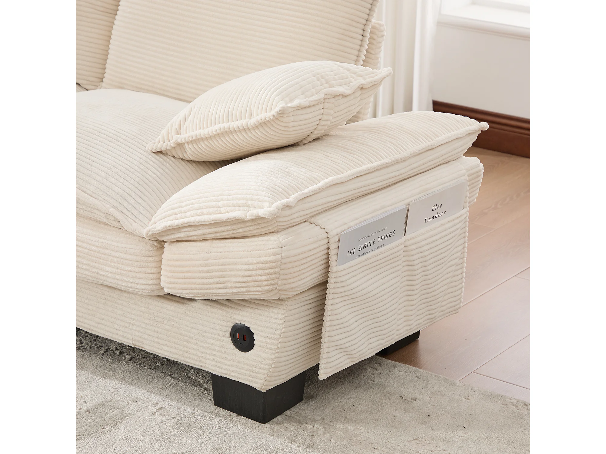 3-Sitzer-Cordsofa-Set – 260 x 132 x 84 cm – mit 1 Aufbewahrungshocker + USB-Anschluss + Taschen – beige