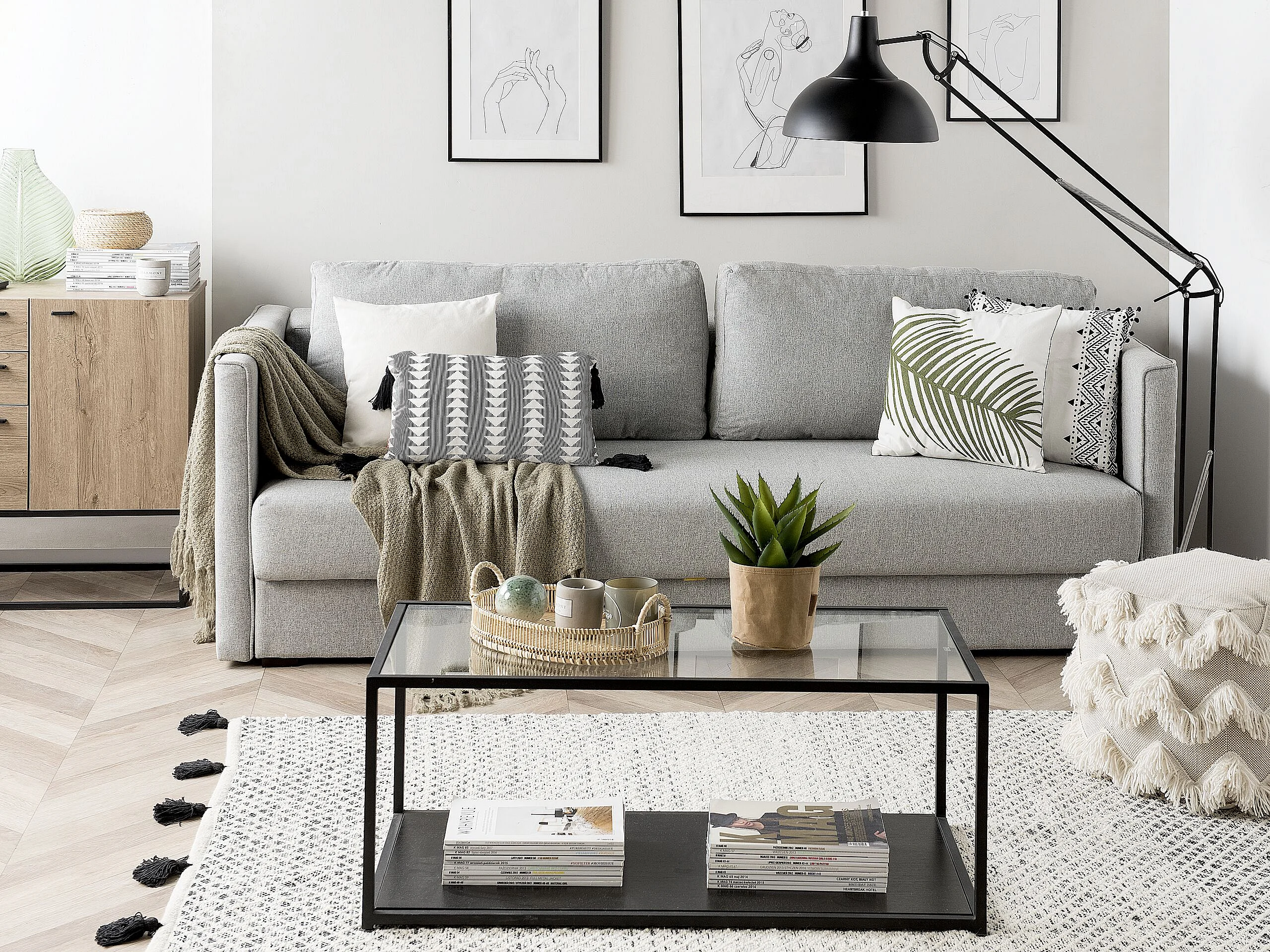 3-Sitzer Schlafsofa Stoff grau mit Bettkasten flachen Armlehnen geradlinig Eksjo