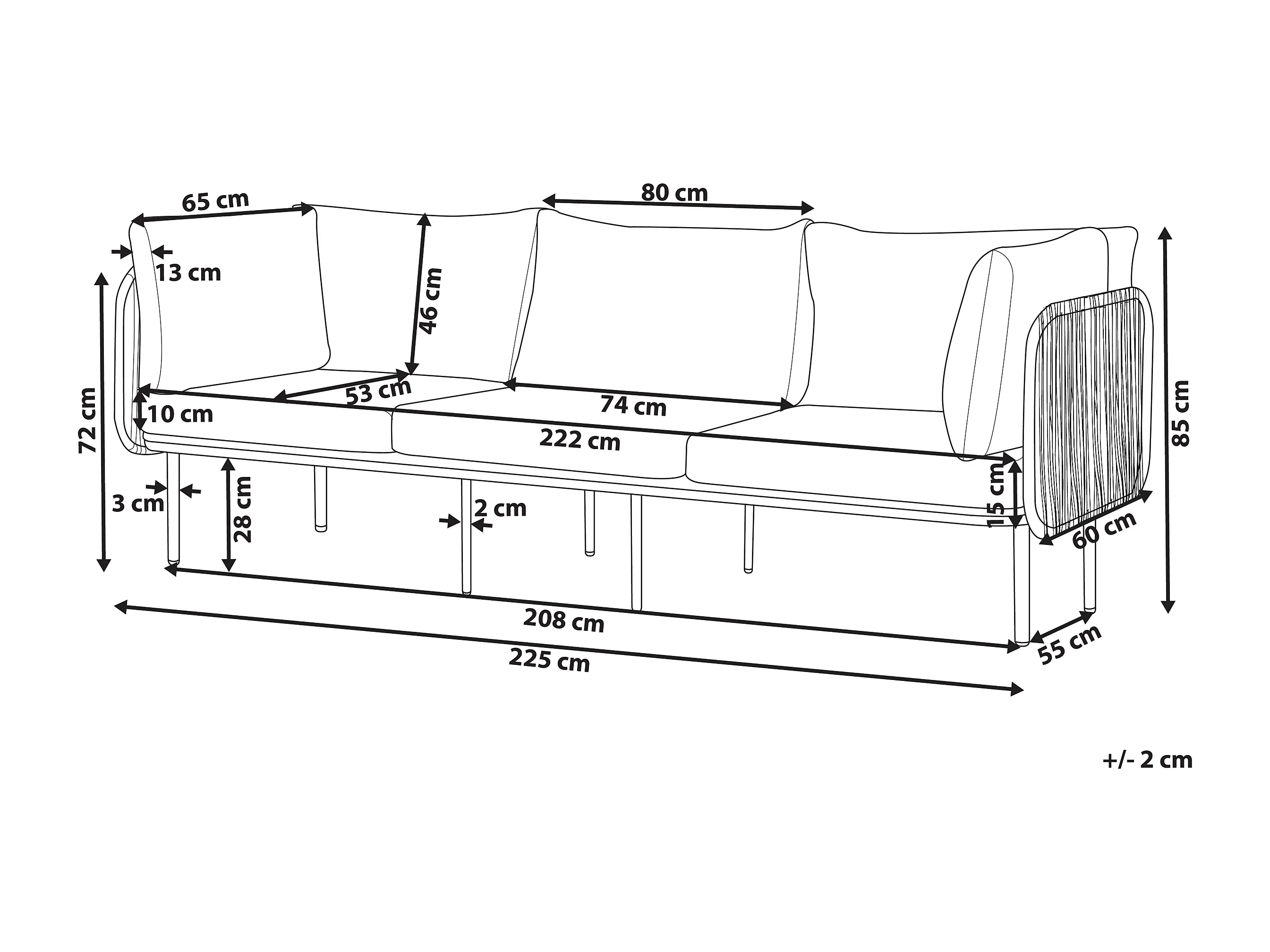 Gartensofa 3-Sitzer SENISE Metall Grau