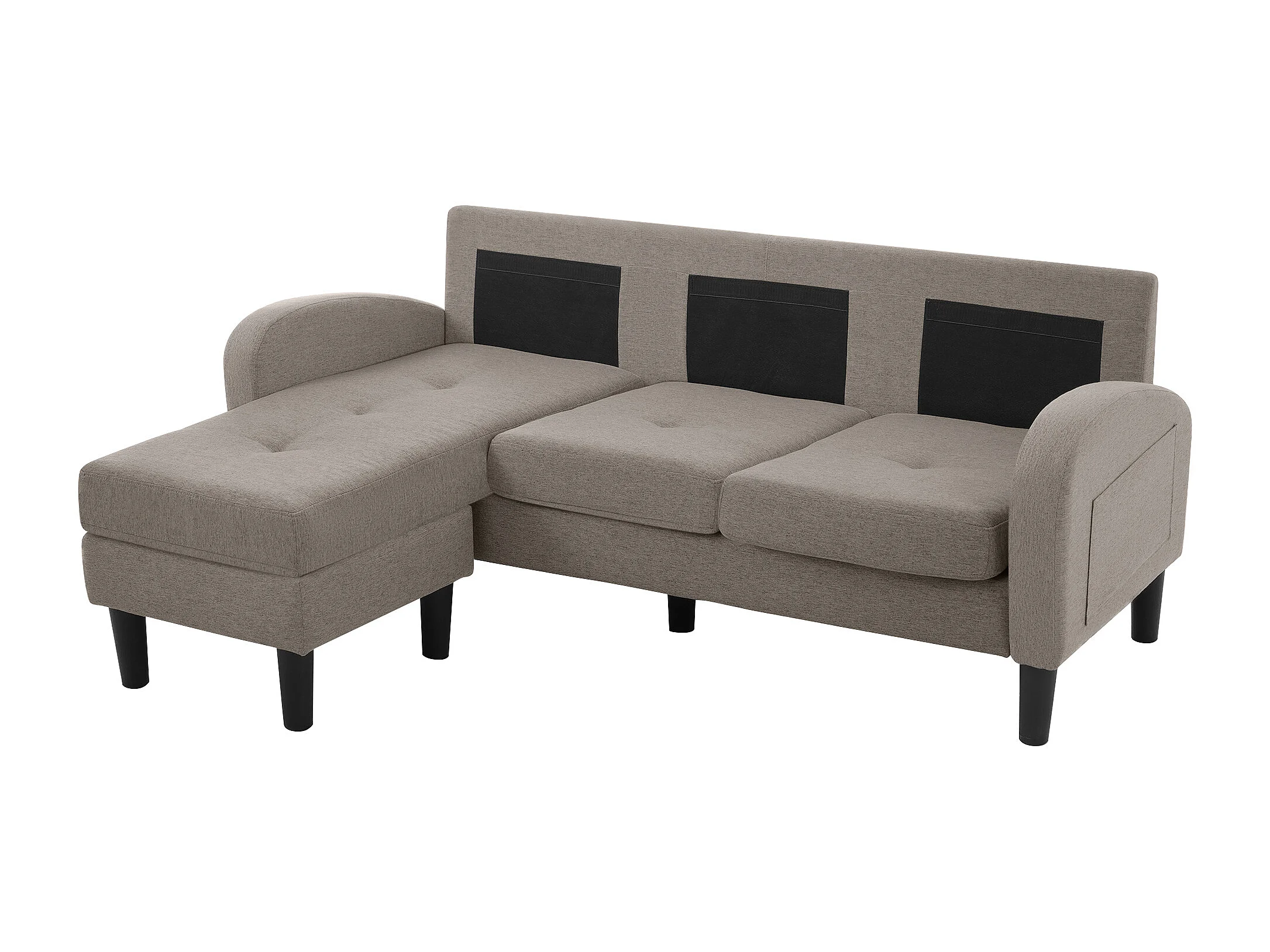 3-Sitzer-Sofa mit Chaiselongue – Ecksofa mit Seitentaschen – Dunkelgrauer Baumwoll-Leinen-Stoff
