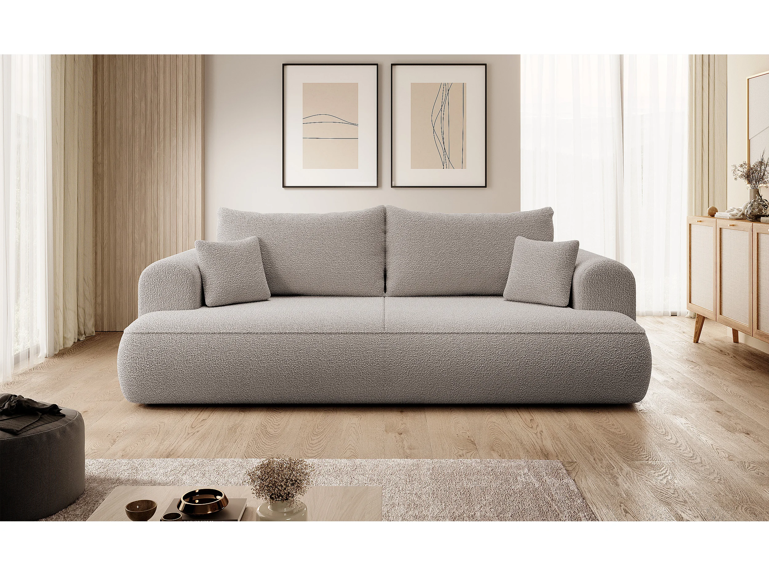 3-Sitzer-Sofa mit Schlaffunktion - Boucle-Bezug in Dunkelbeige - OVO
