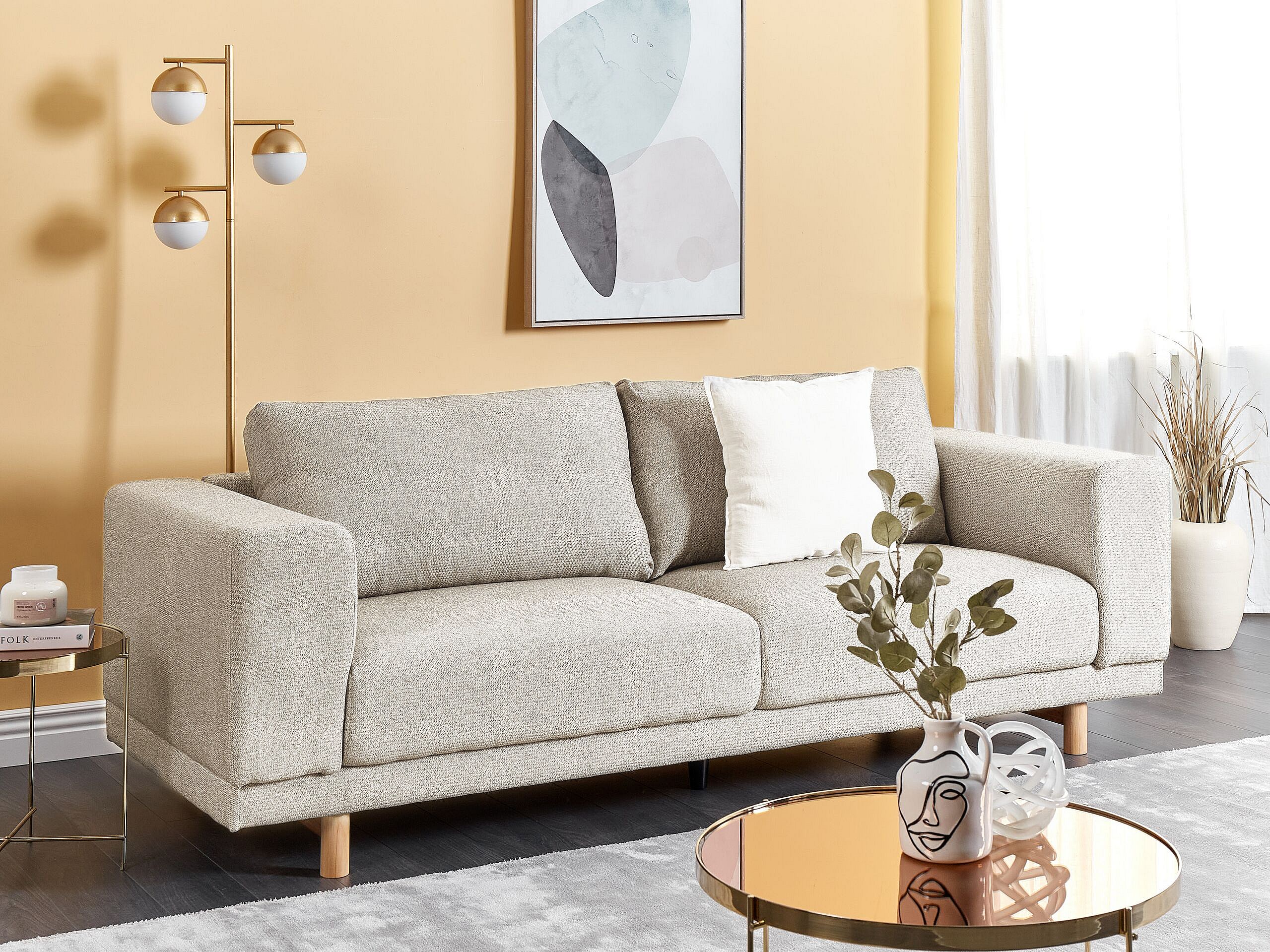 3-Sitzer Sofa Stoffbezug beige mit Holzbeinen 220 cm lang modern skandi Nivala