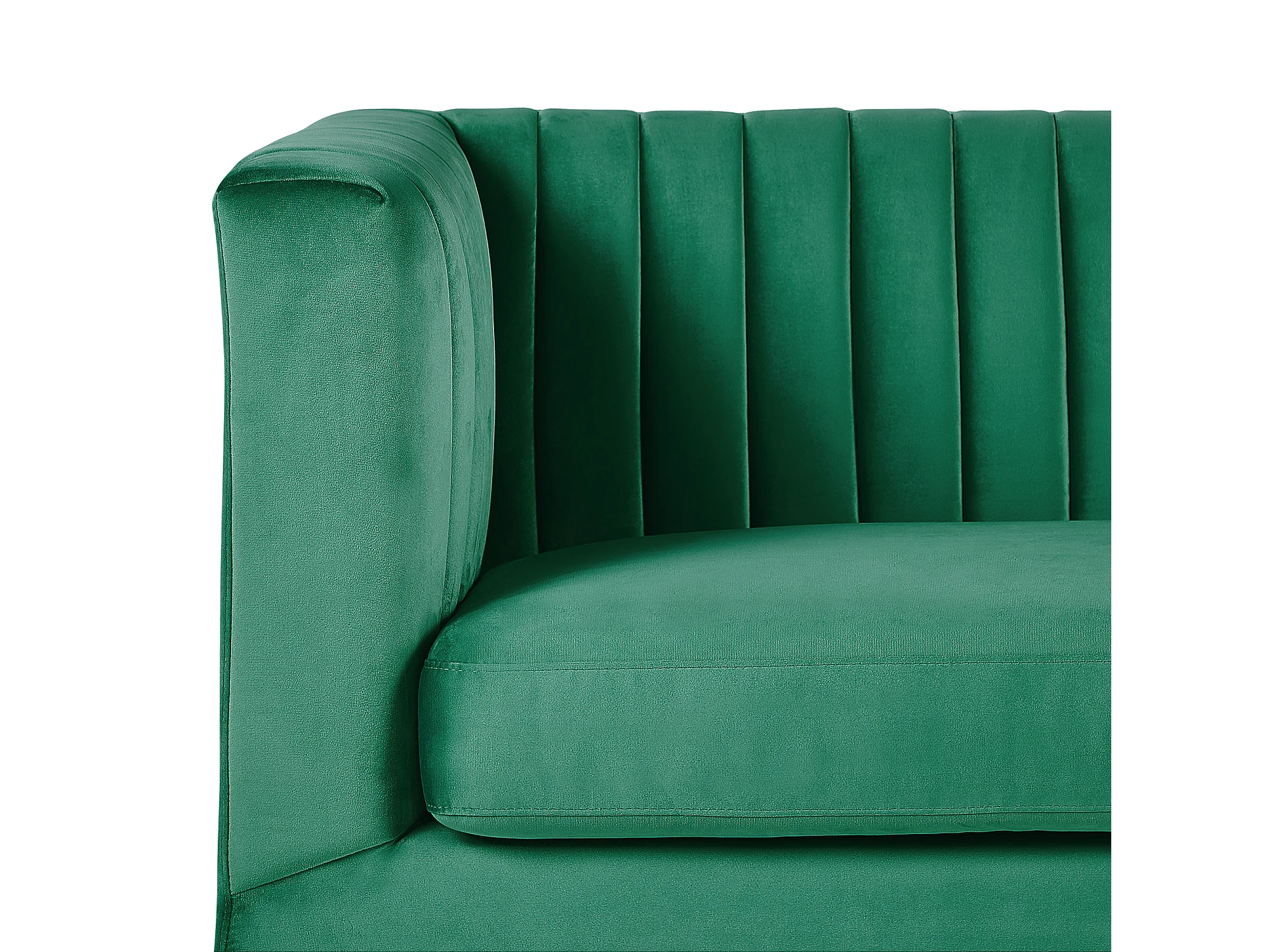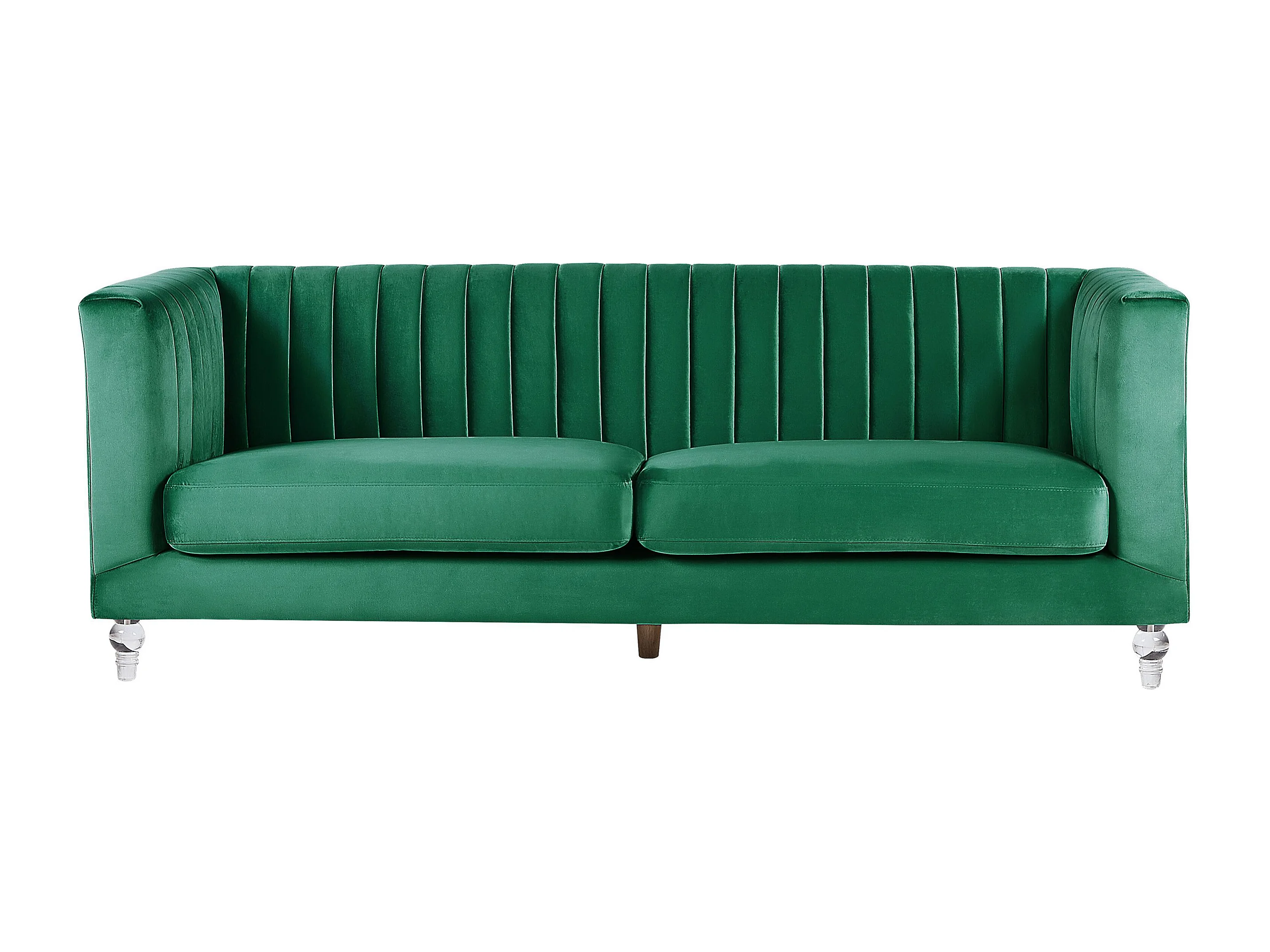 3-Sitzer Sofa Samtstoff grün gesteppt mit Acryl-Beinen dicken Sitzkissen Arvika