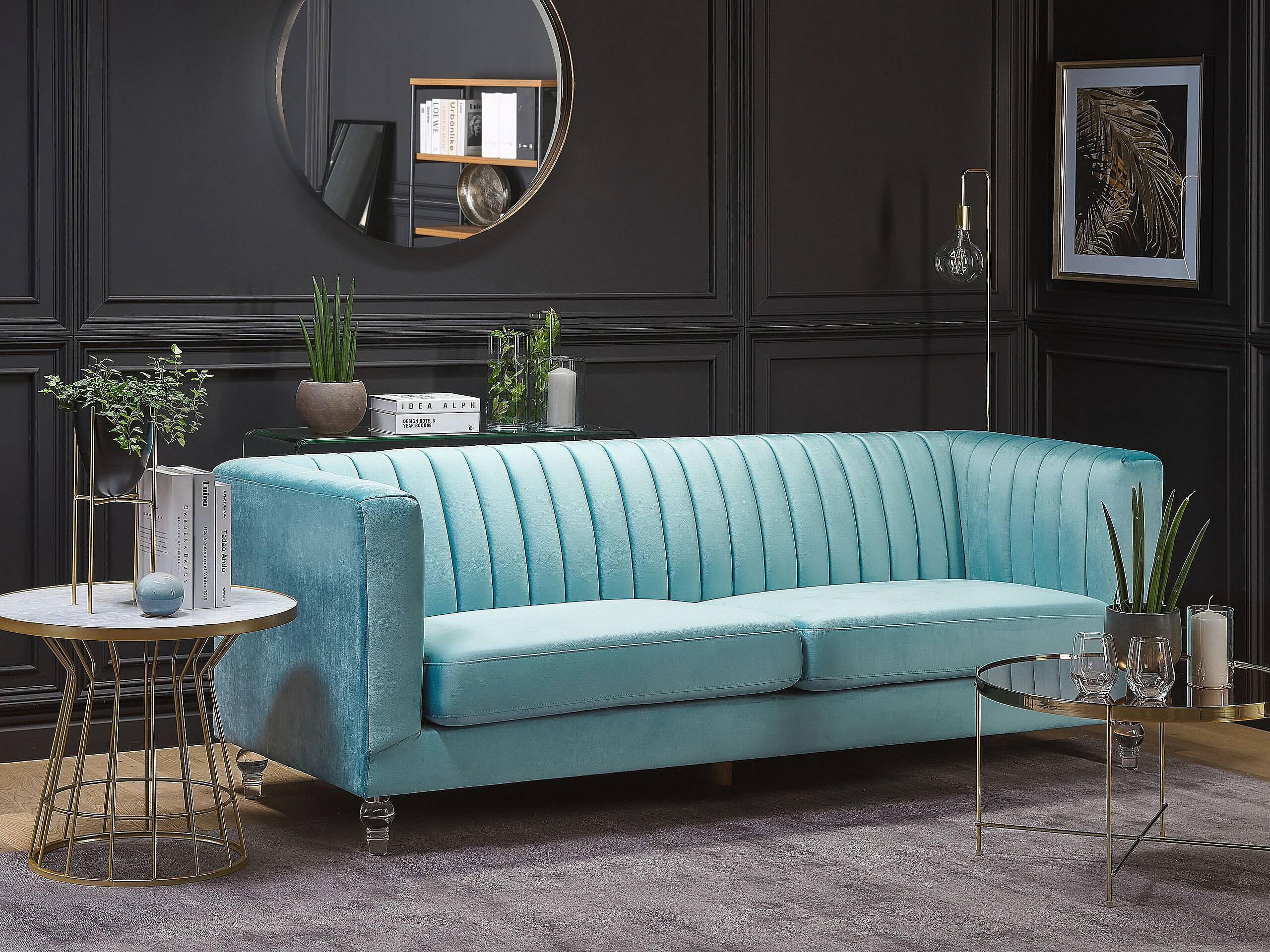 Sofa ARVIKA Samtstoff Hellblau 3-Sitzer