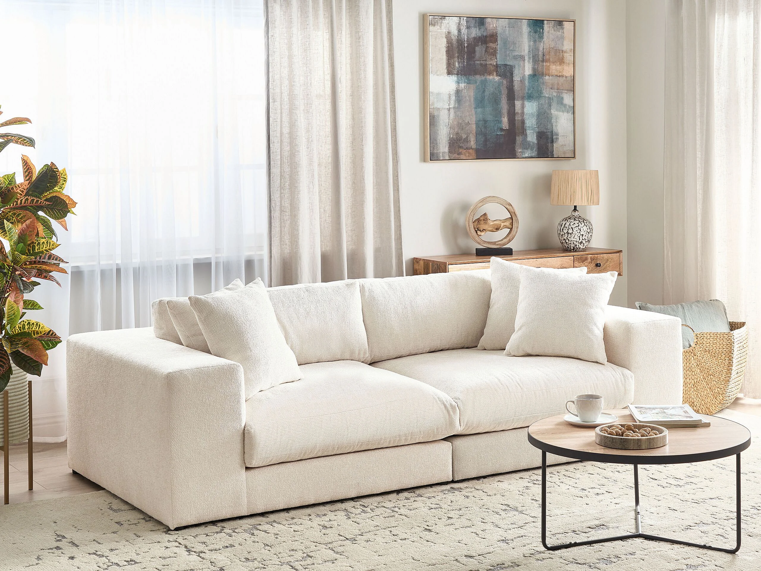 3-Sitzer Sofa Stoffbezug creme weiß mit Armlehnen dicken Kissen Glorvika II