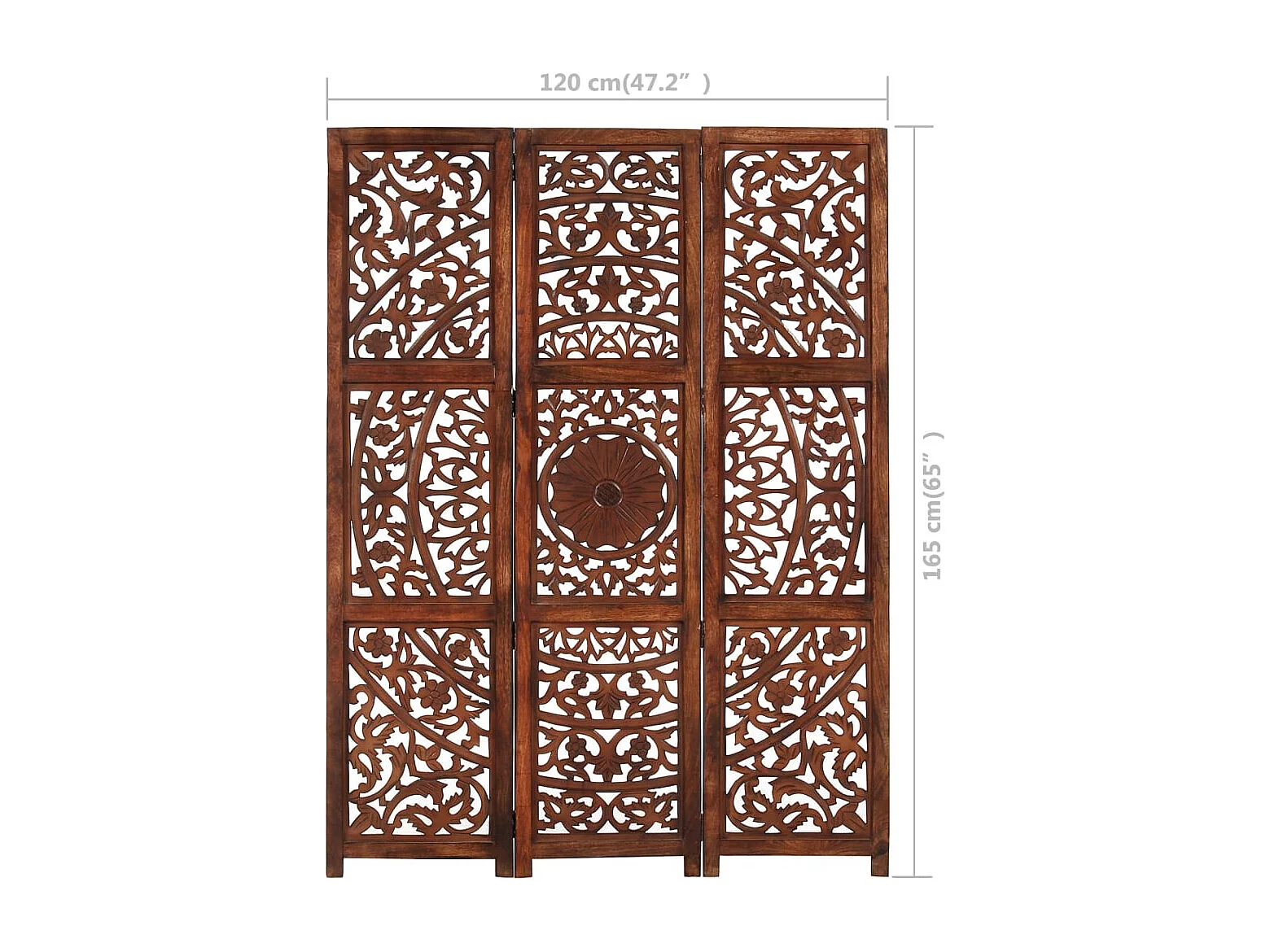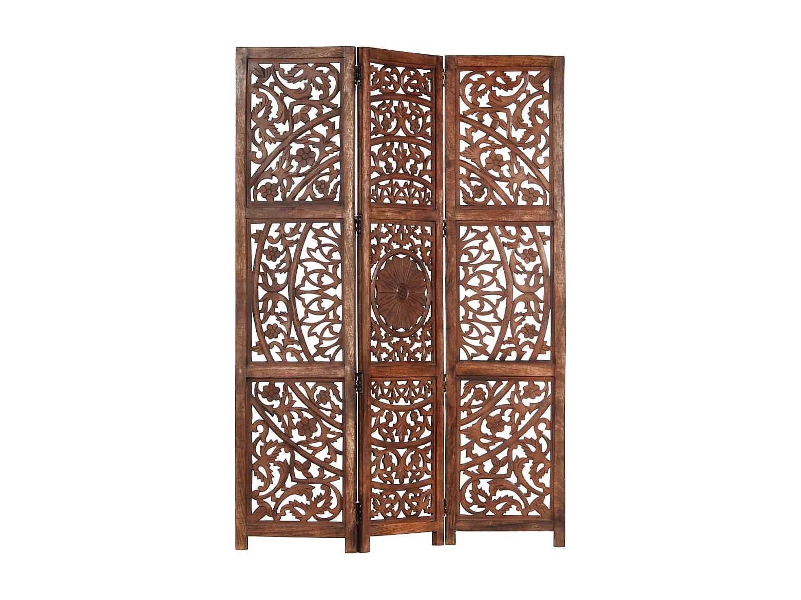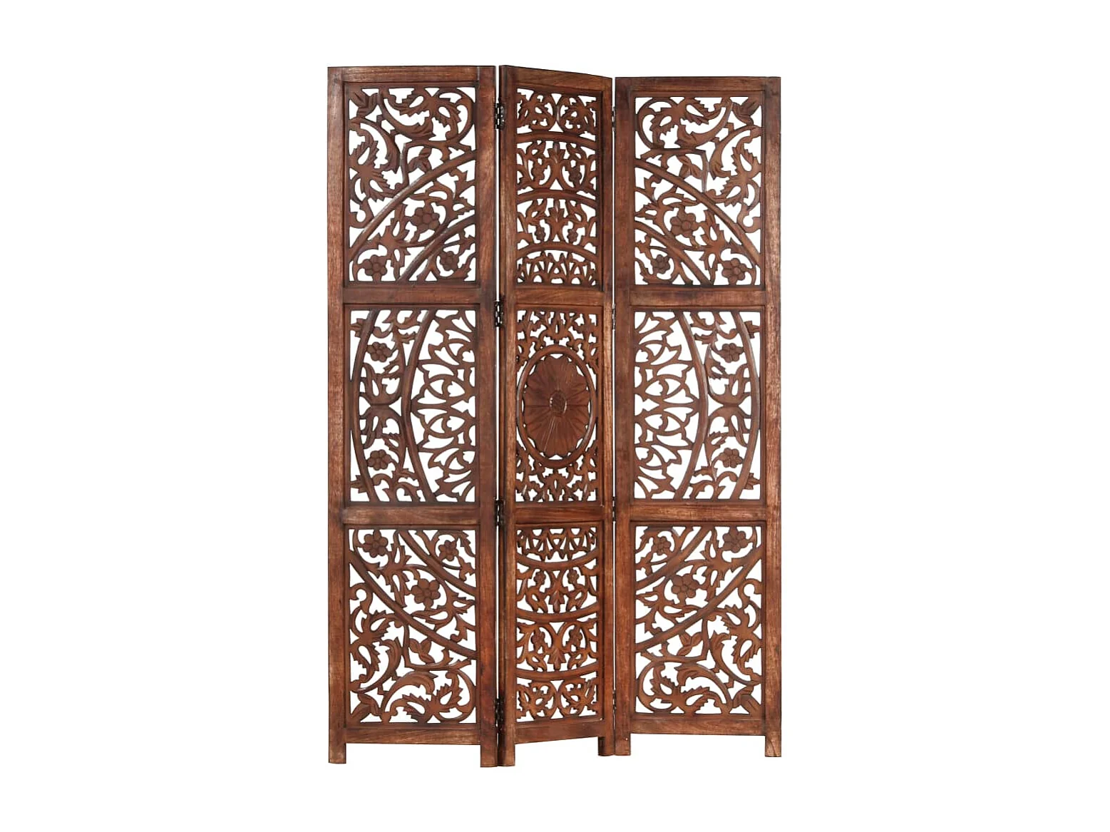 3-tlg. Raumteiler Handgeschnitzt Braun 120×165 cm Mangoholz