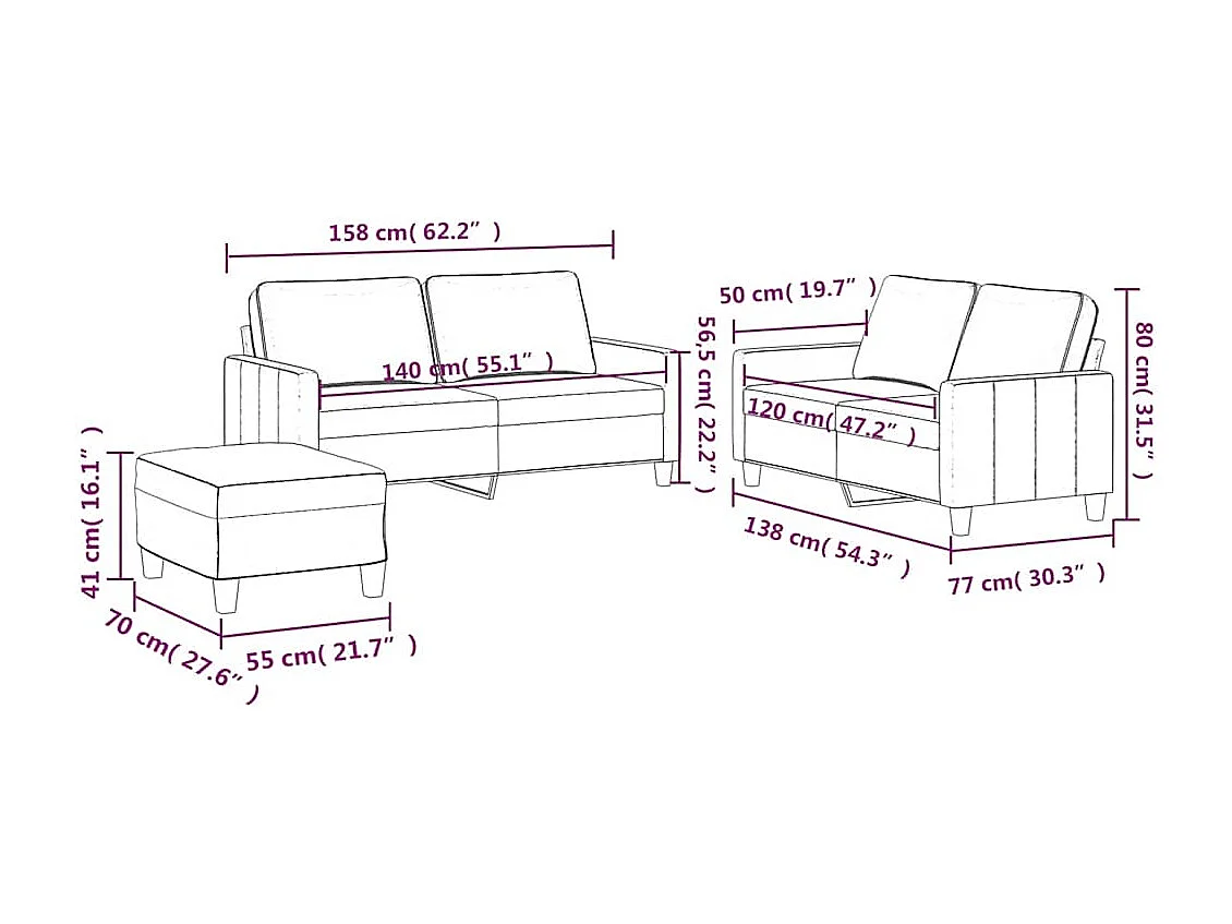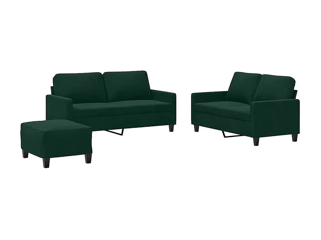 3-tlg. Sofagarnitur mit Kissen Dunkelgrün Samt