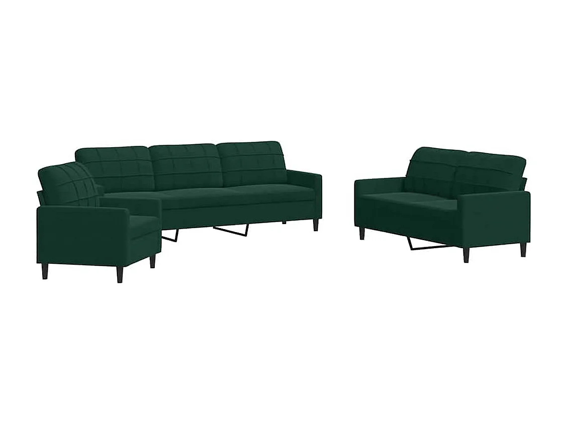 3-tlg. Sofagarnitur mit Kissen Dunkelgrün Samt