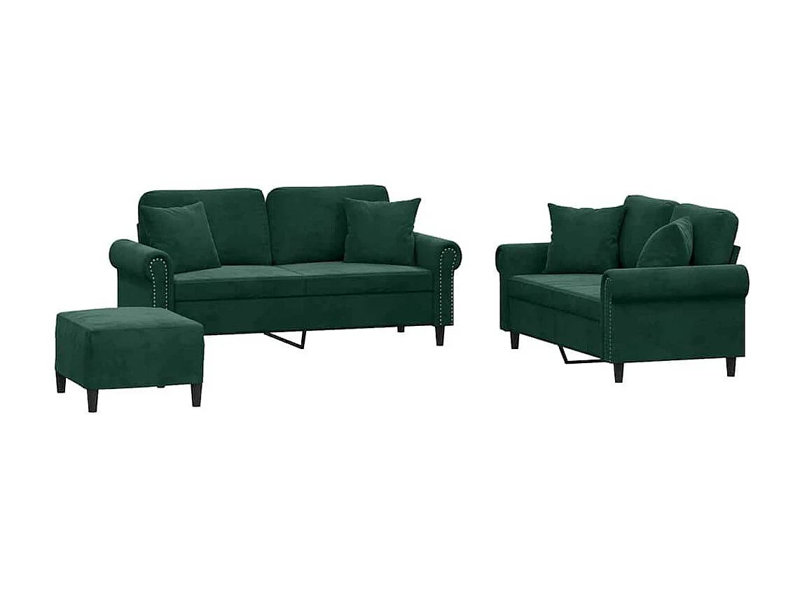 3-tlg. Sofagarnitur mit Kissen und Nackenrollen Dunkelgrün Samt