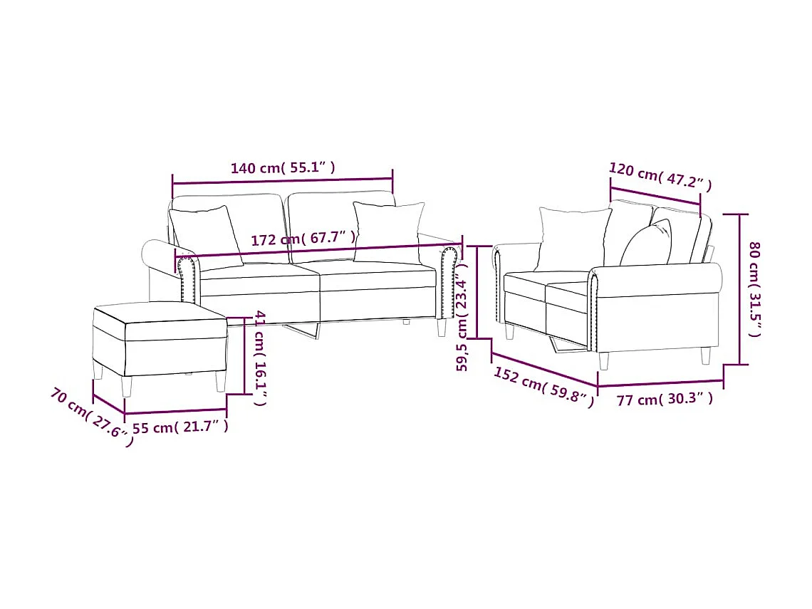 3-tlg. Sofagarnitur mit Kissen Dunkelgrün Samt