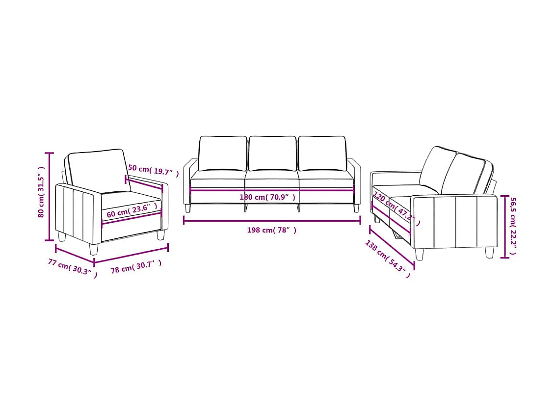 3-tlg. Sofagarnitur mit Kissen Schwarz Stoff