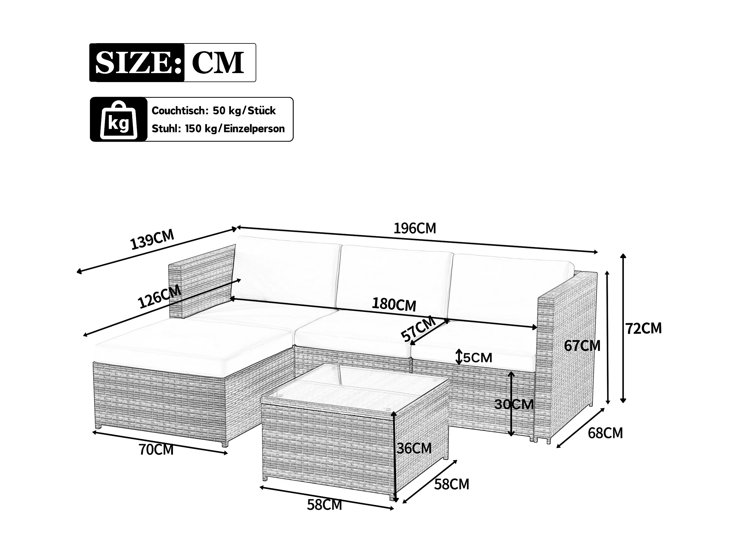 4-Sitzer-Eckgartenmöbelset aus Kunstharzgeflecht mit Couchtisch - Glasplatte - Grau