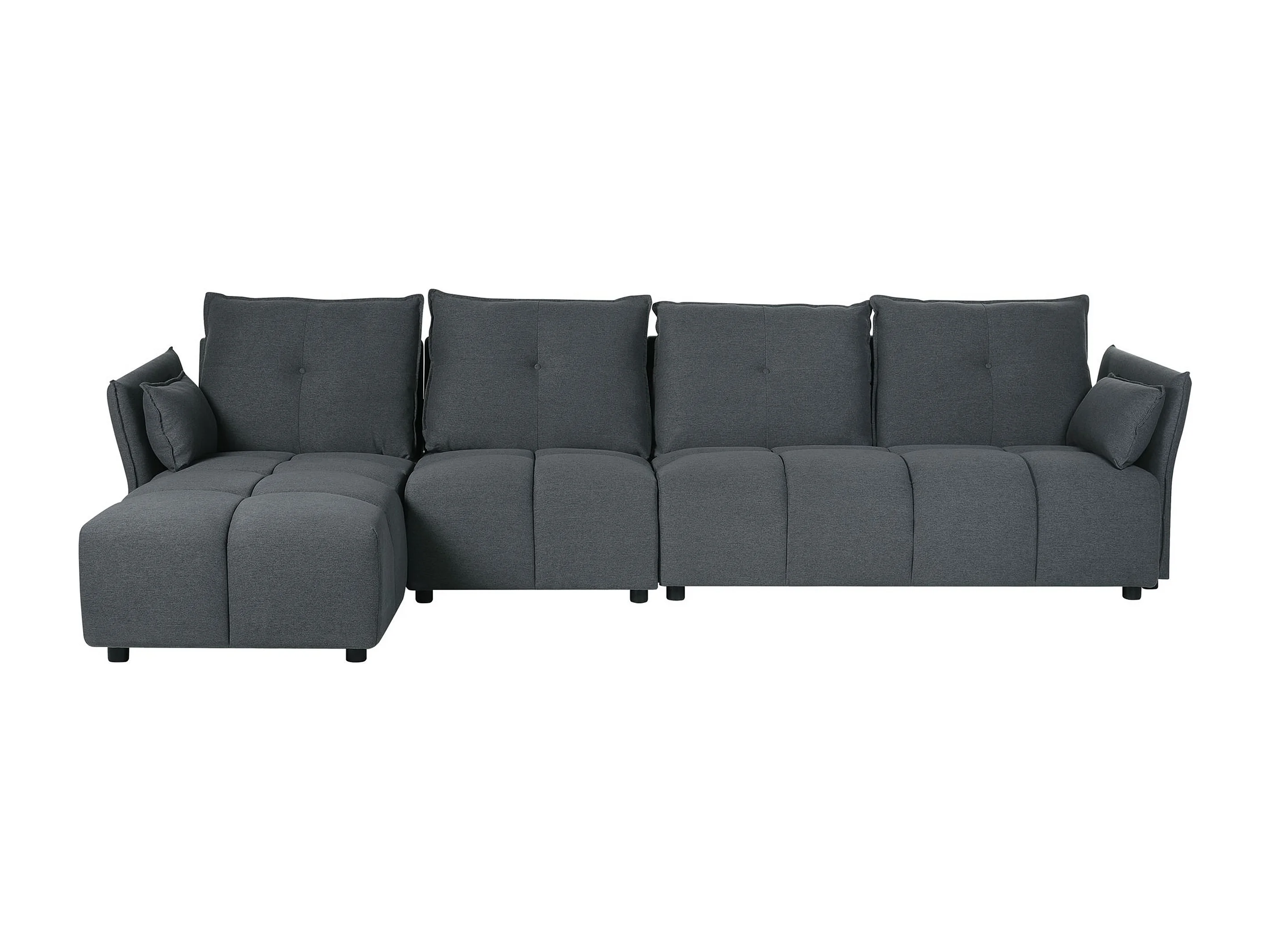 4-Sitzer Ecksofa mit Chaiselongue rechts grau L-Form viele Kissen Modern Tomra
