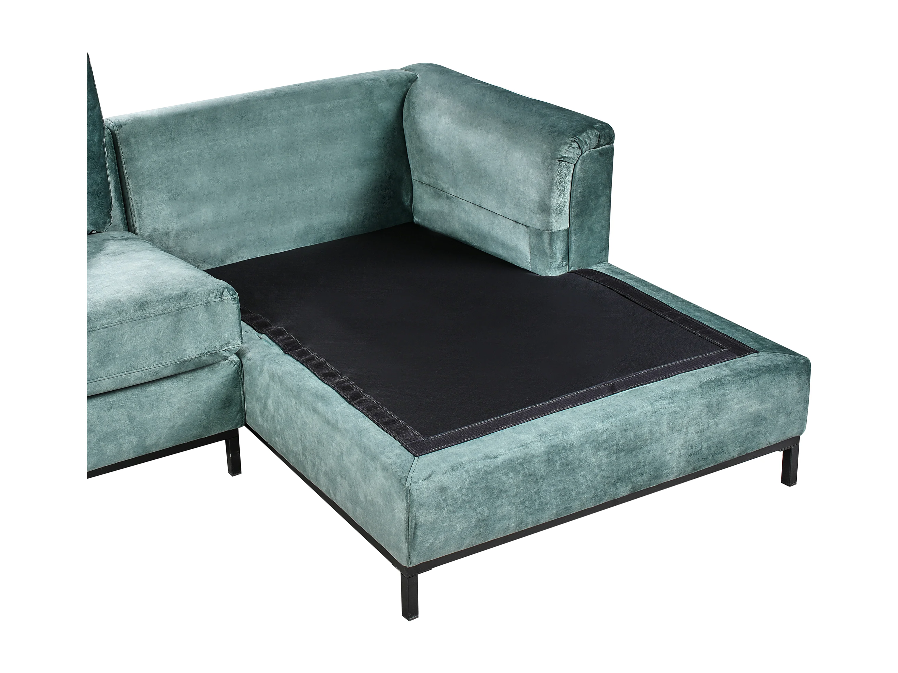 Ecksofa OSLO Samtstoff Blaugrün 4-Sitzer linksseitig