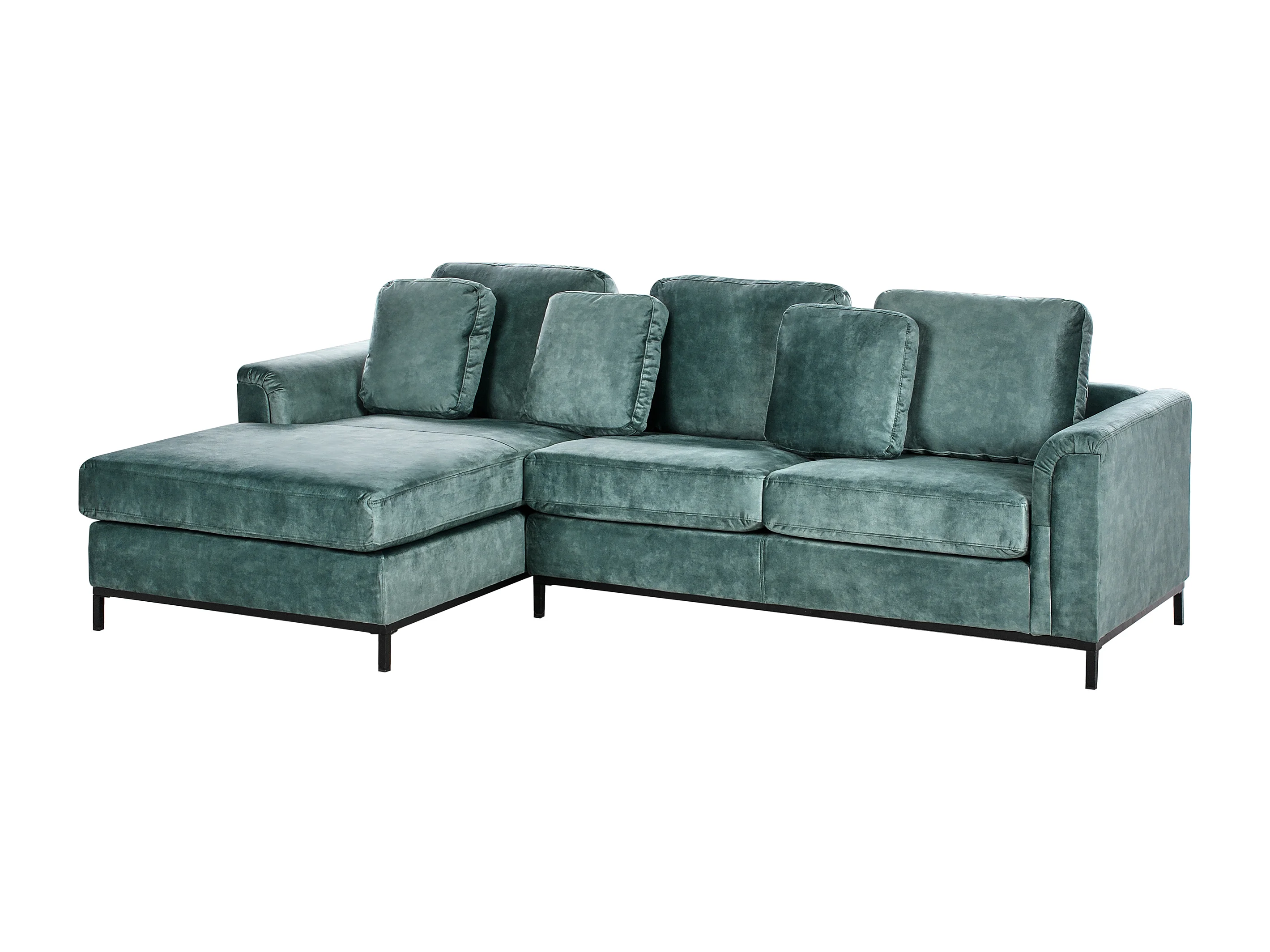 4-Sitzer Ecksofa Samt blaugrün mit Chaiselongue rechts Edelstahlfüße schwarz Oslo