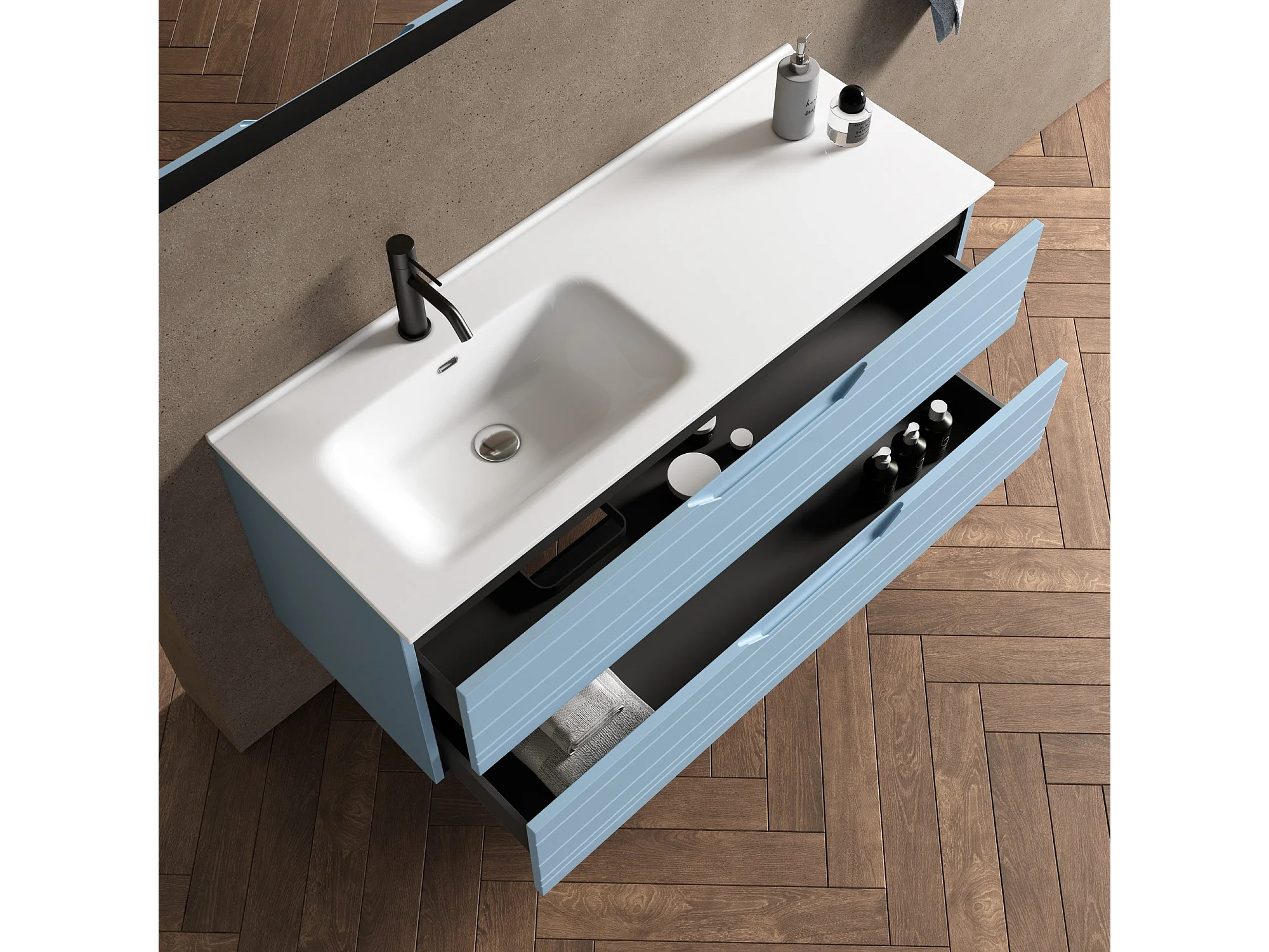 4-teiliges Set mit linker Badewanne SOLMIRA tiffanyblau