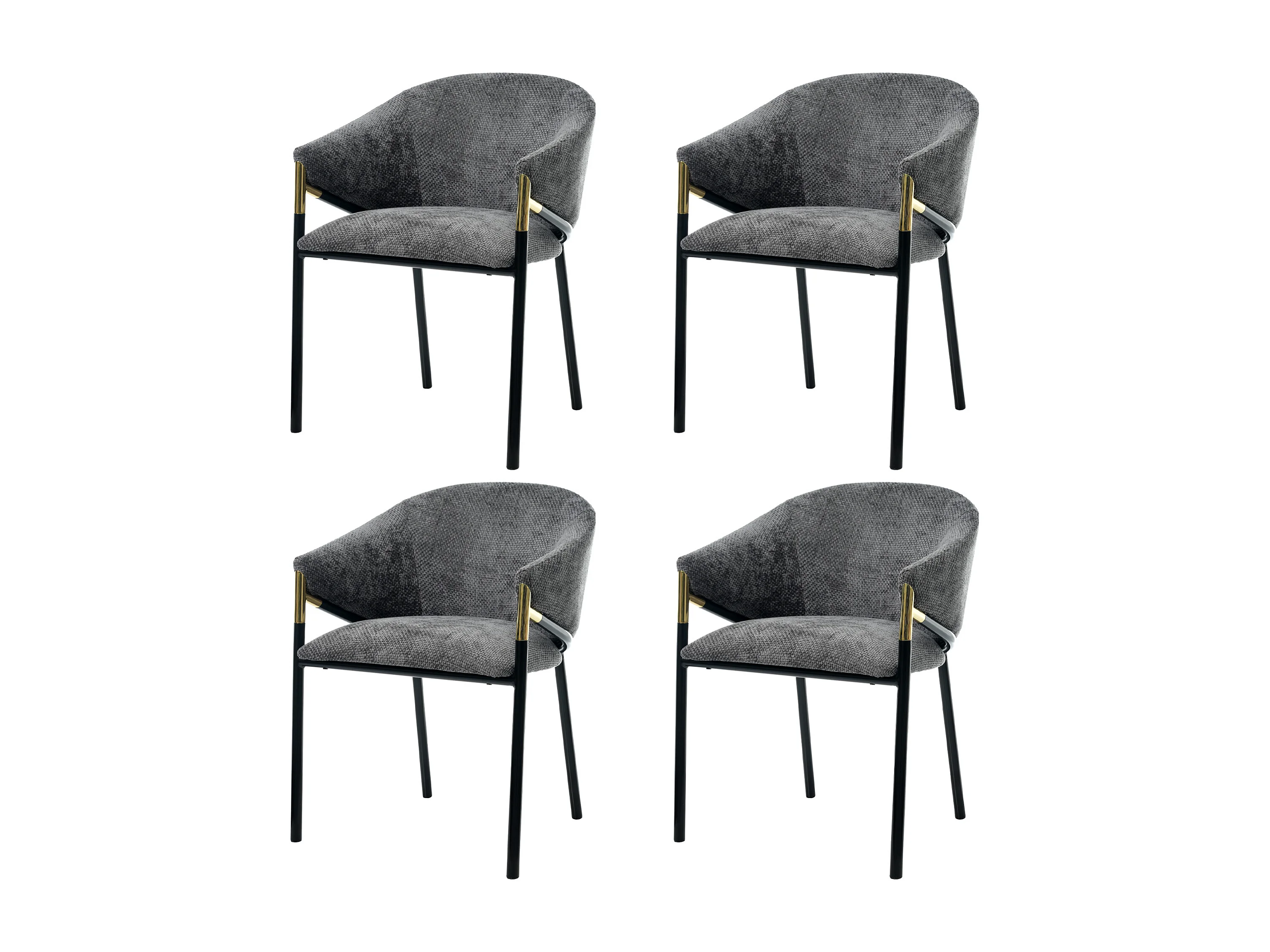 4er-Set Esszimmerstühle – 56,5 x 56,5 x 78,5 cm – Moderner Stil – Goldfarbene Armlehnen – Samt – Grau