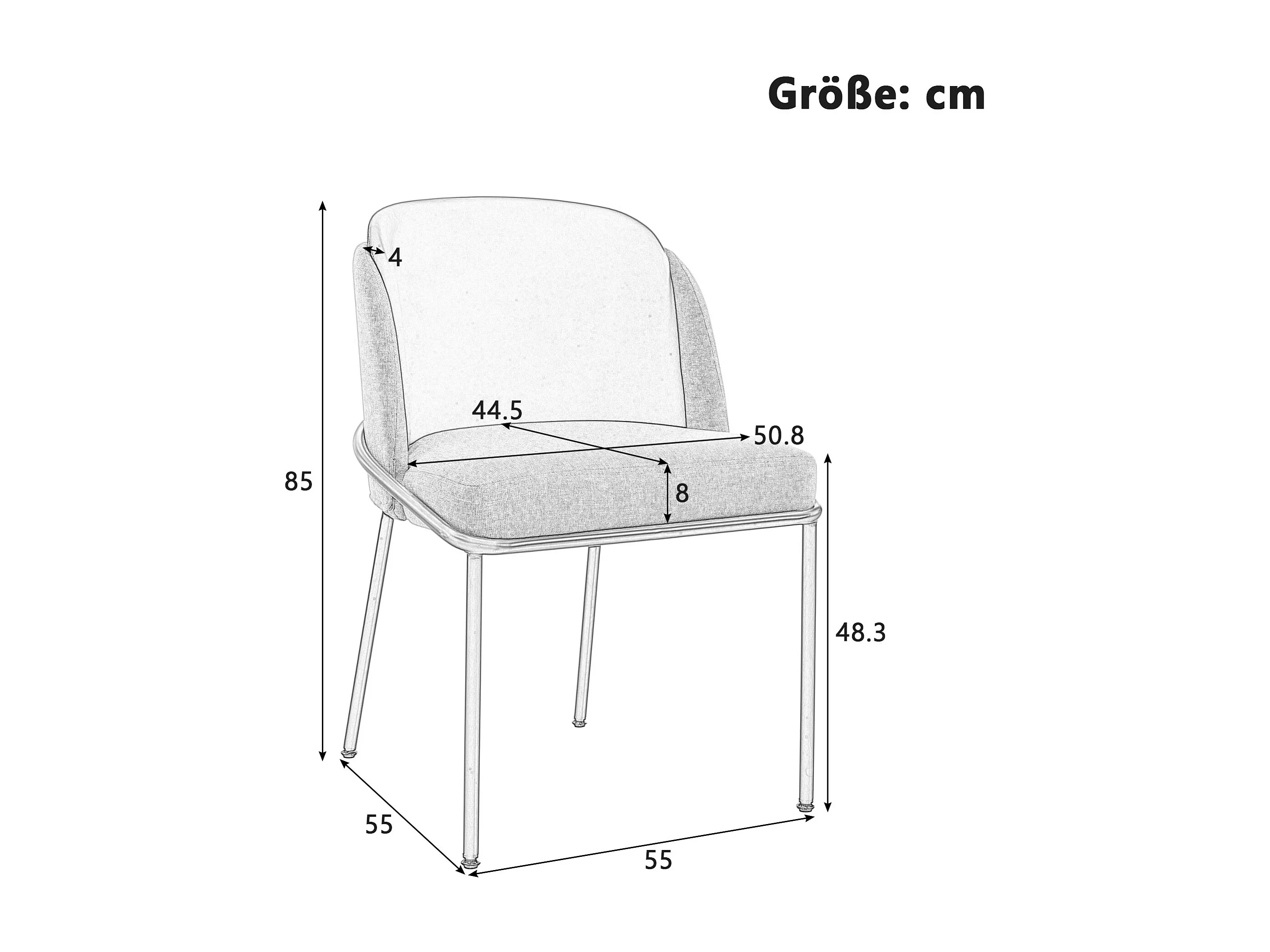 4er-Set Stühle – 55 x 55 x 85 cm – Verstellbare Kippfüße – Metall + Kunstleder – Beige