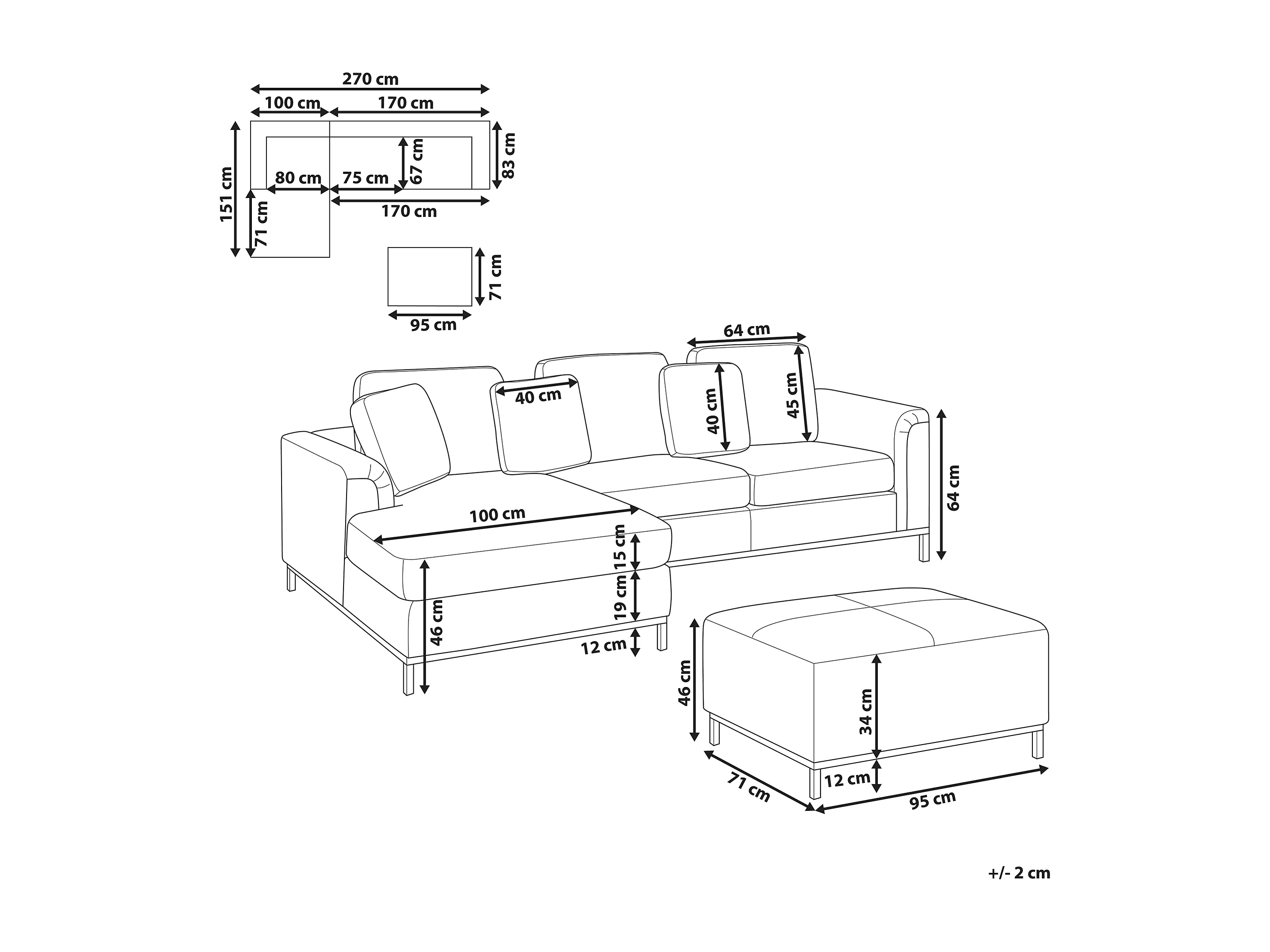 Modernes Ecksofa mit Ottomane rechtsseitig beige Polsterbezug Oslo