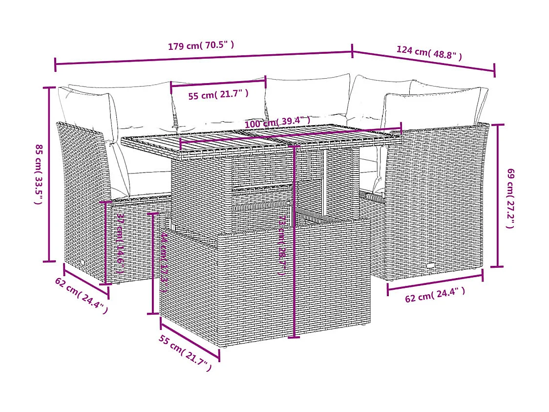 5-tlg. Garten-Sofagarnitur mit Kissen Beige Poly Rattan