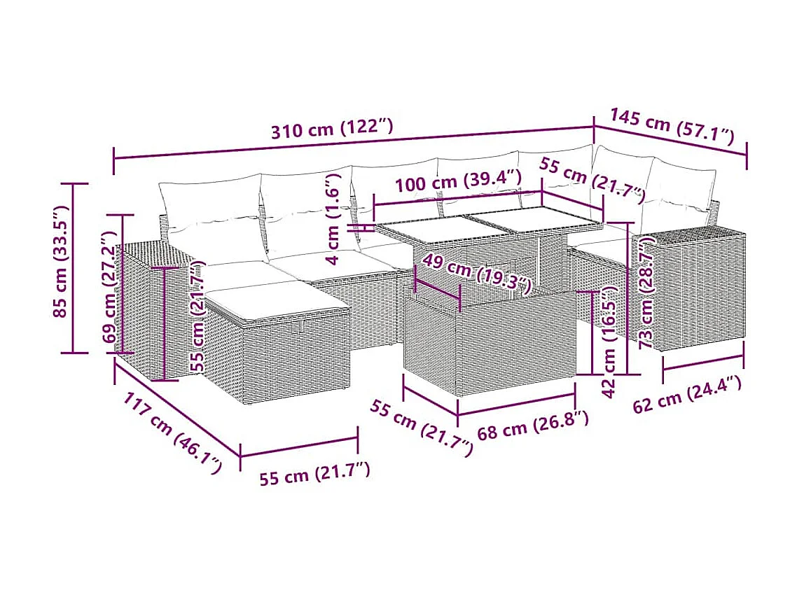 8-tlg. Garten-Sofagarnitur mit Kissen Beige Poly Rattan Akazie