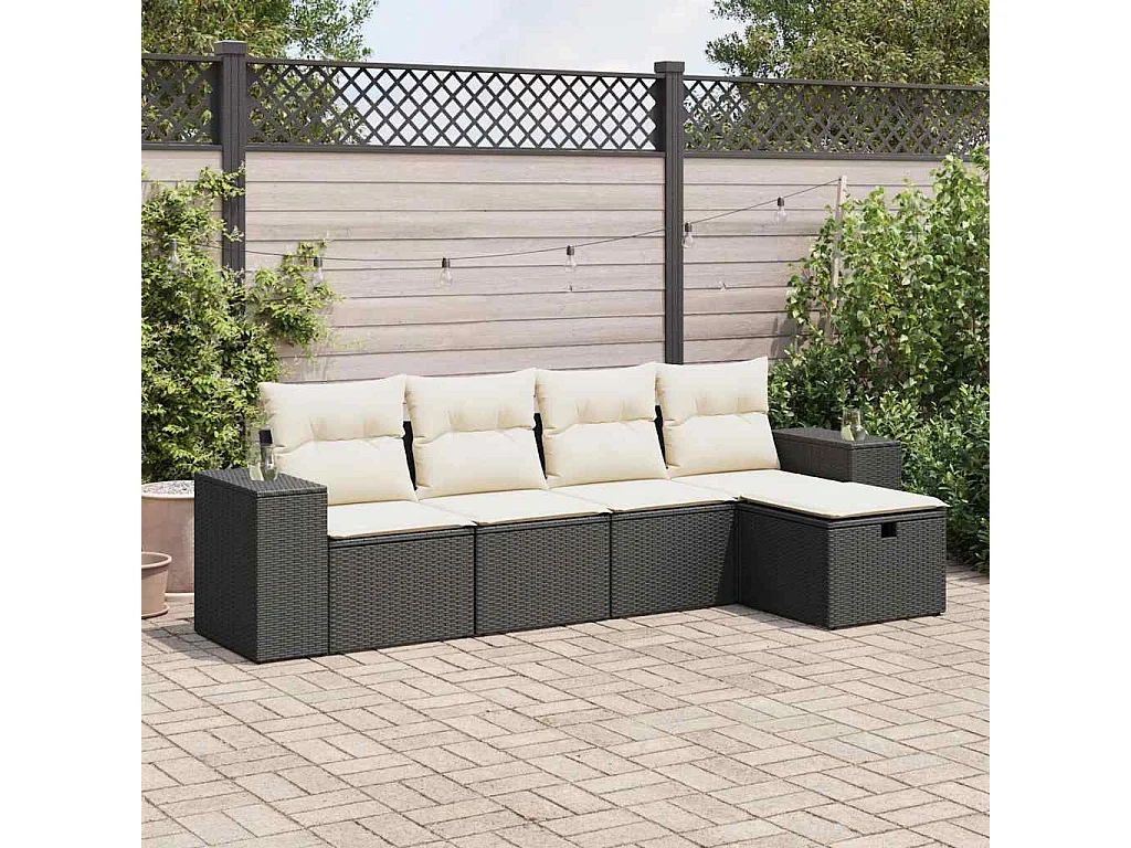 5-tlg. Garten-Sofagarnitur mit Kissen Schwarz Poly Rattan