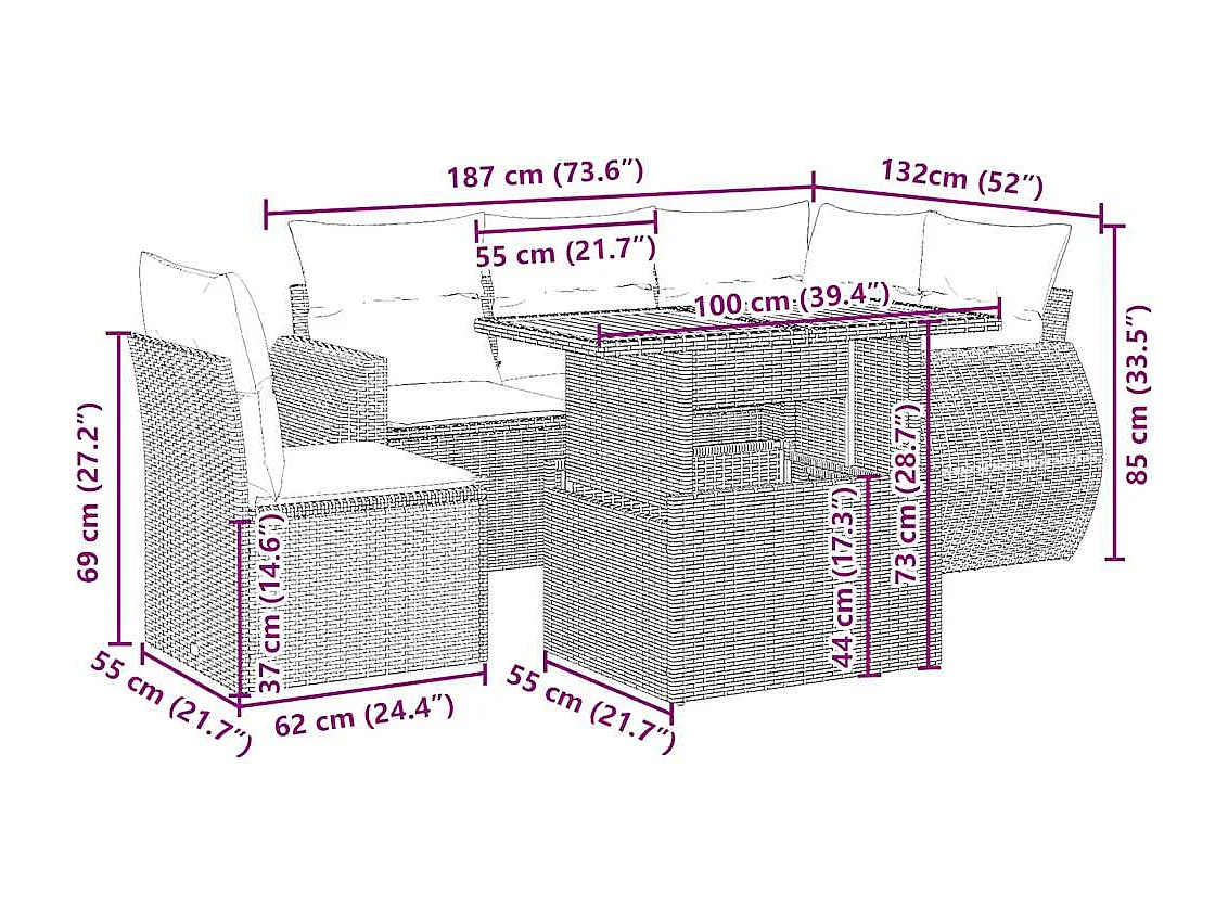 6-tlg. Garten-Sofagarnitur mit Kissen Beige Poly Rattan