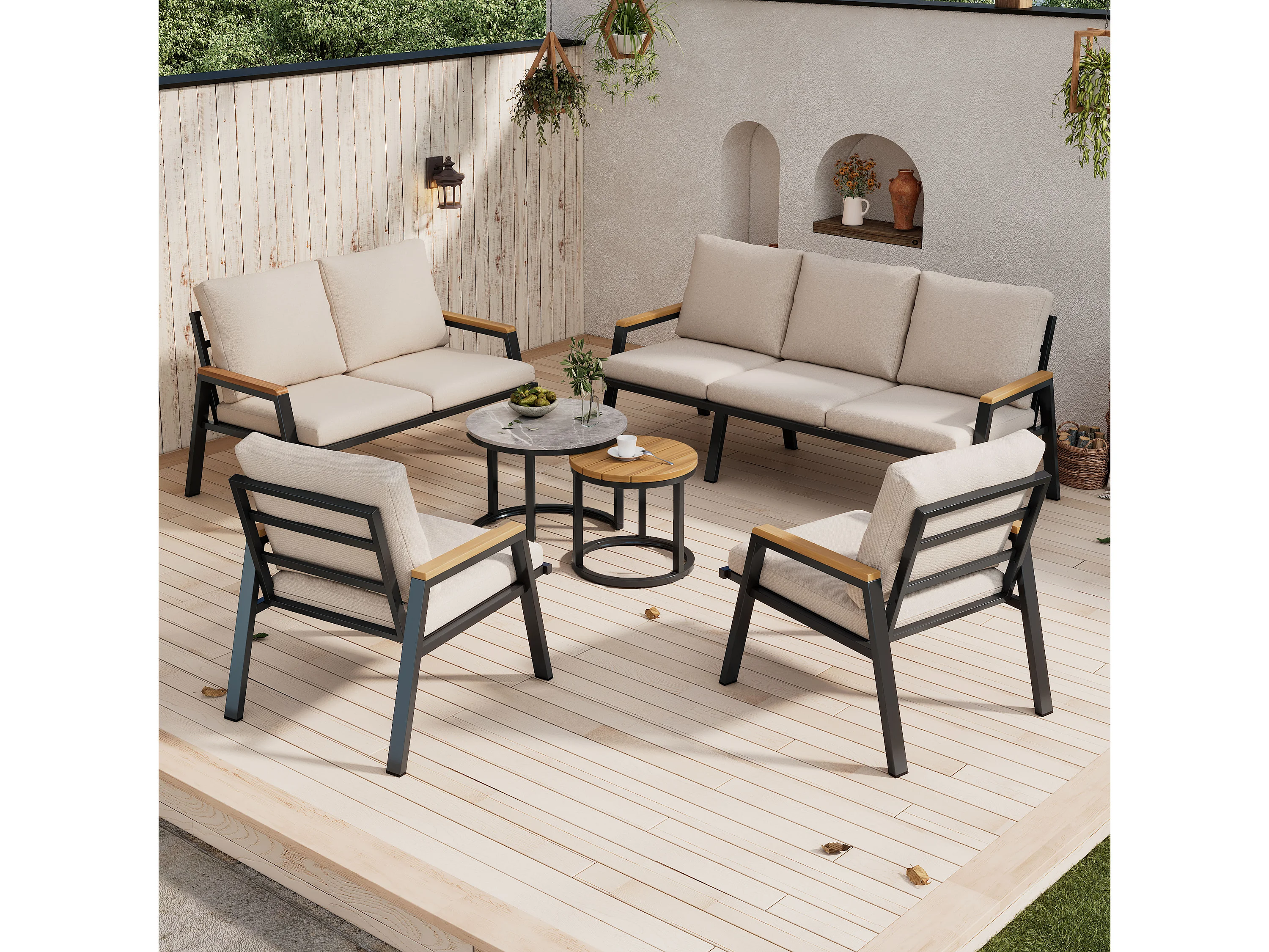7-teiliges Gartenmöbelset – mit Kissen + 2 Sofas + 2 Sesseln + 2 Tischen – Polyester – Grau