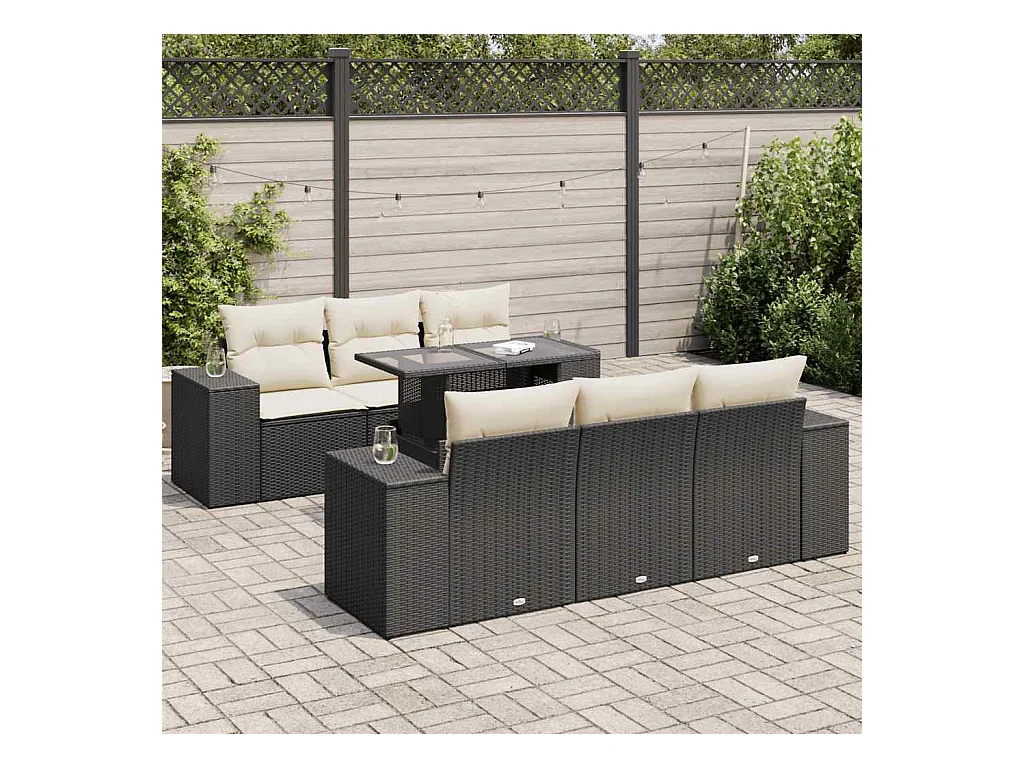 7-tlg. Garten-Sofagarnitur mit Kissen Schwarz Poly Rattan