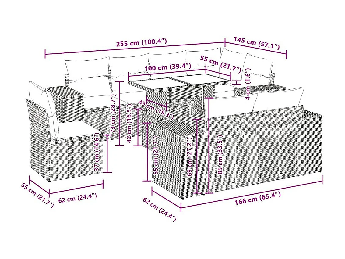 7-tlg. Garten-Sofagarnitur mit Kissen Schwarz Poly Rattan