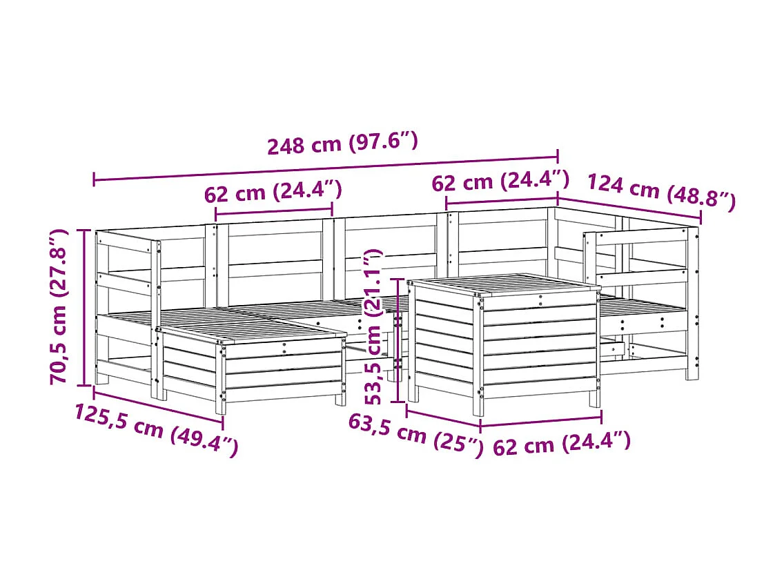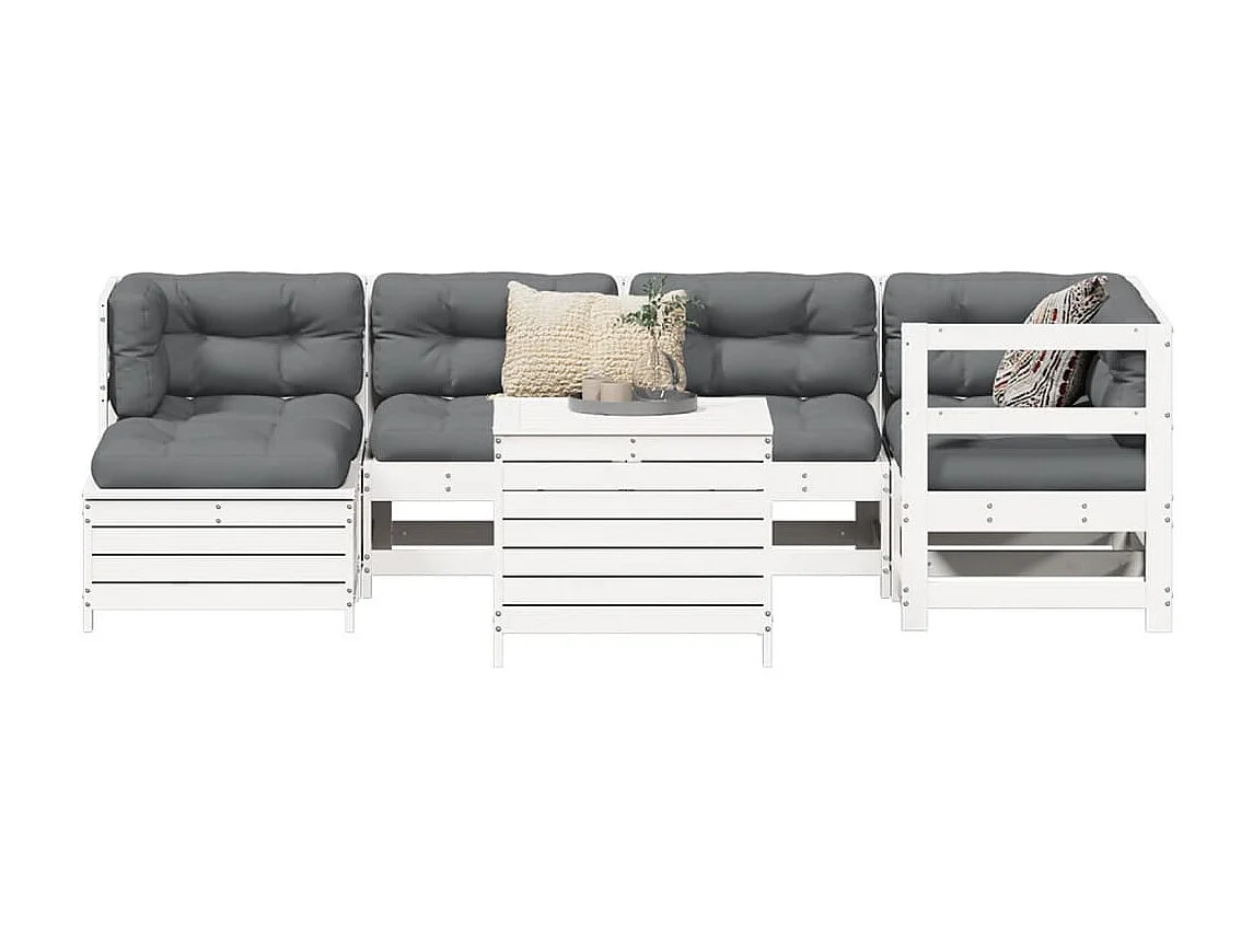 6-tlg. Garten-Sofagarnitur Weiß Massivholz Kiefer