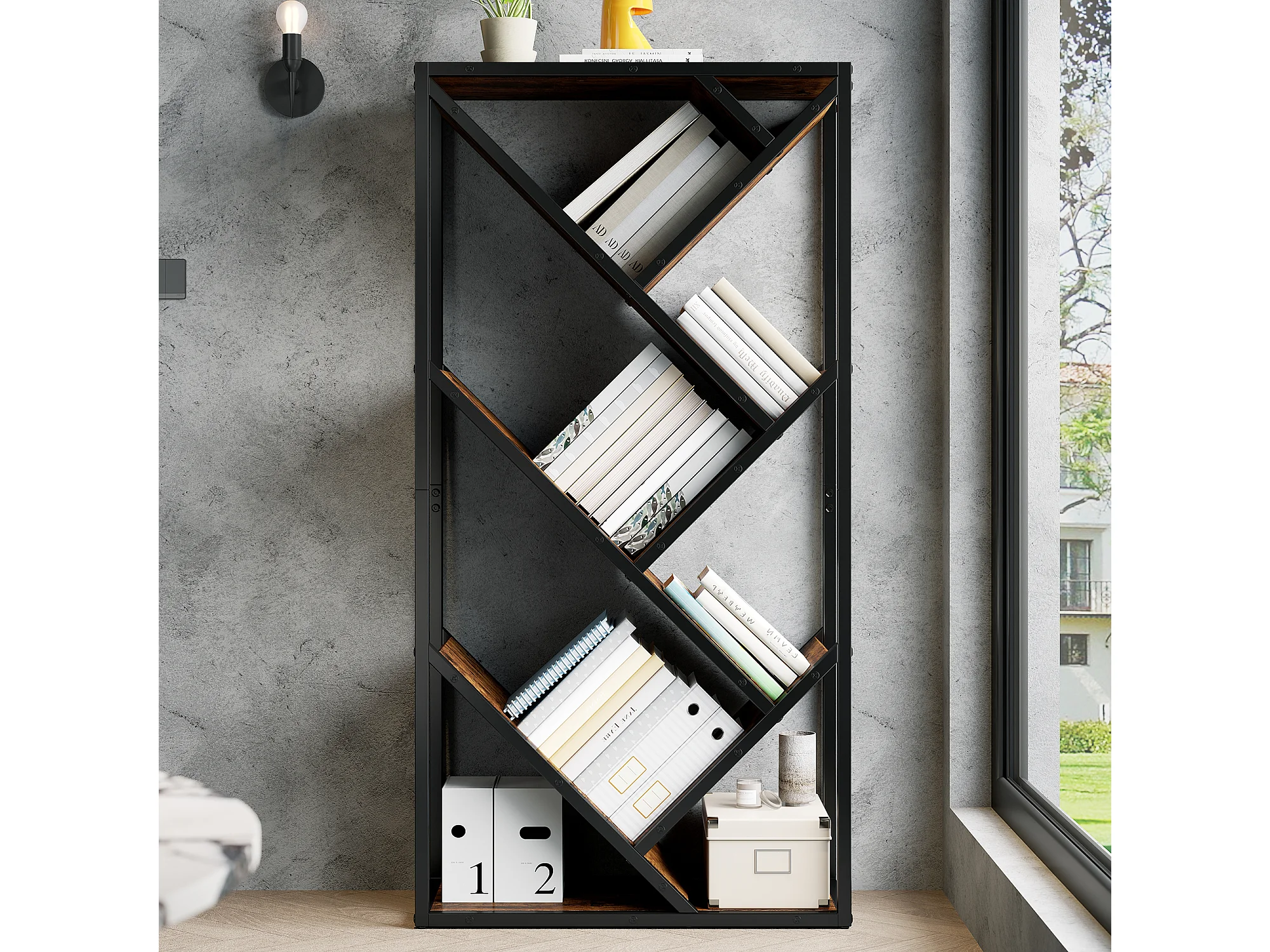 8-stufiges, baumförmiges Aufbewahrungsregal – 80 x 35 x 160 cm – für Schlafzimmer/Wohnzimmer/Büro – MDF – Schwarz + Braun