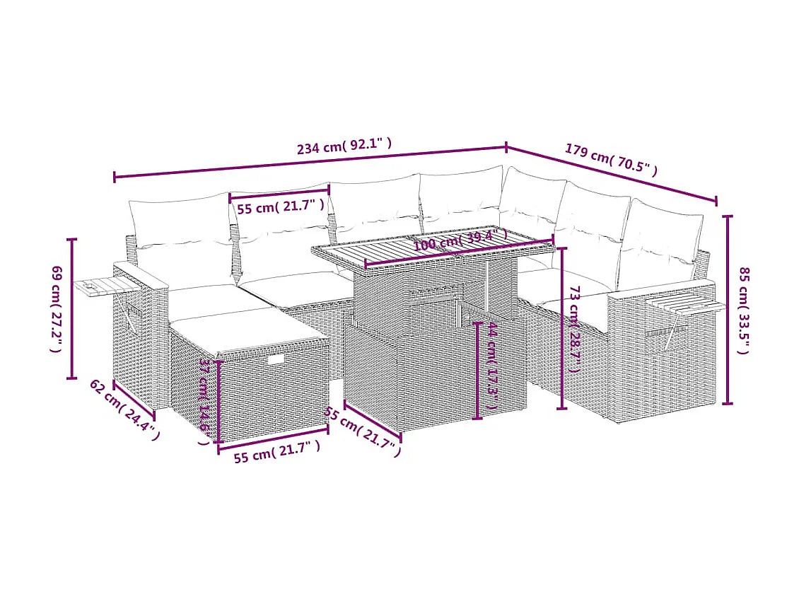 8-tlg. Garten-Sofagarnitur mit Kissen Beige Poly Rattan