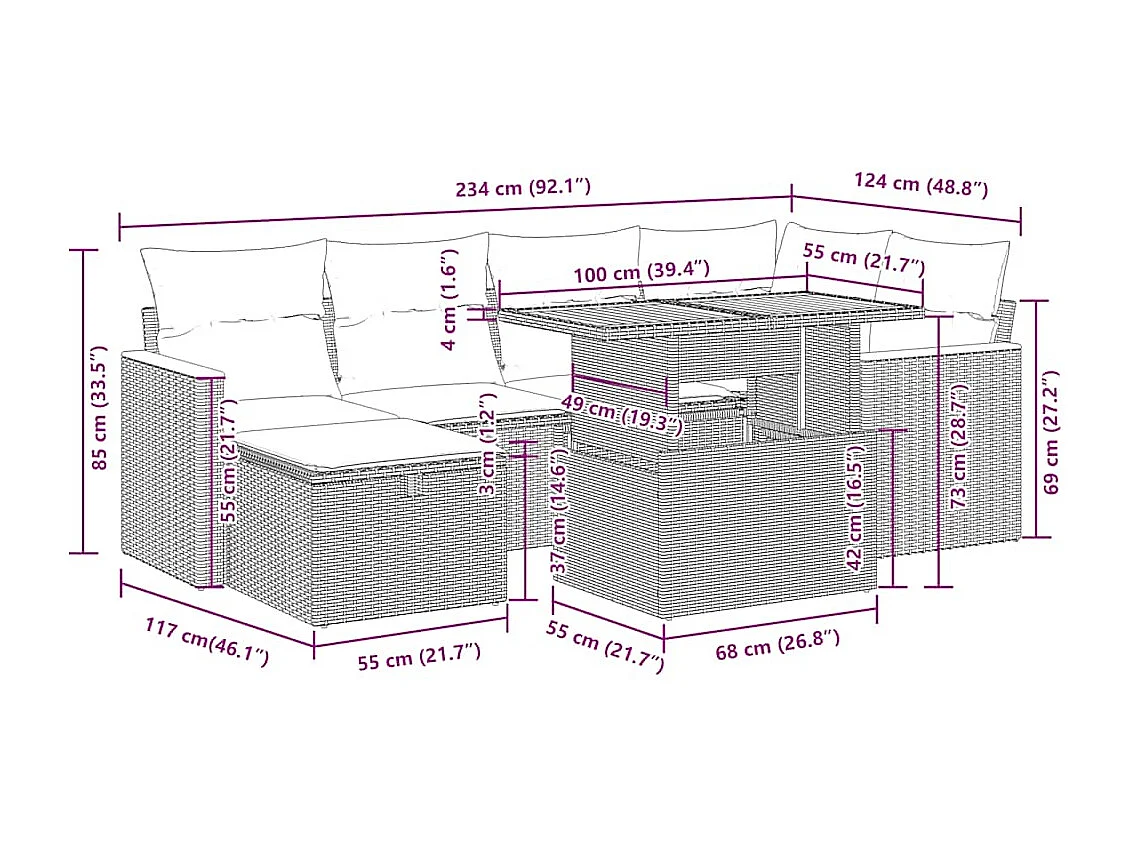 8-tlg. Garten-Sofagarnitur mit Kissen Schwarz Poly Rattan