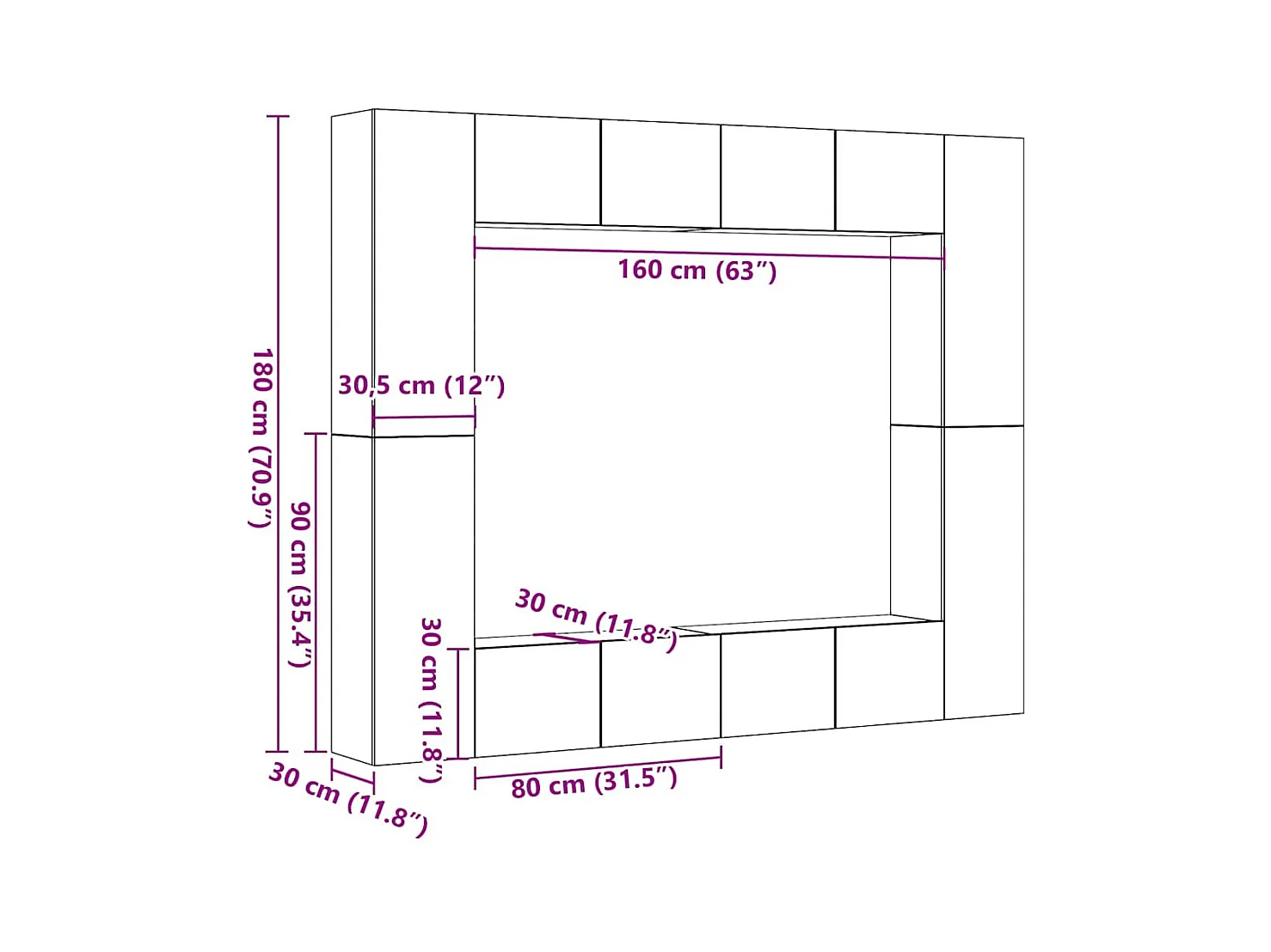 8-tlg. TV-Schrank-Set Wandmontage Altholz-Optik Holzwerkstoff